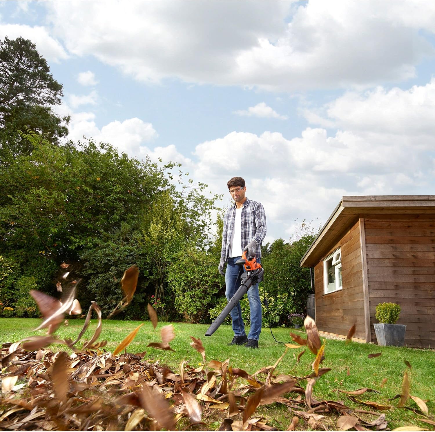 جاروبرقی/دمنده برقی 3 در 1 بلک + دکر BEBLV301 (3000 وات، با خردکن + چنگک برگ قابل اتصال، کوله پشتی کیسه جمع آوری 72 لیتری - سرعت دمیدن بالا و قدرت مکش قابل تنظیم)