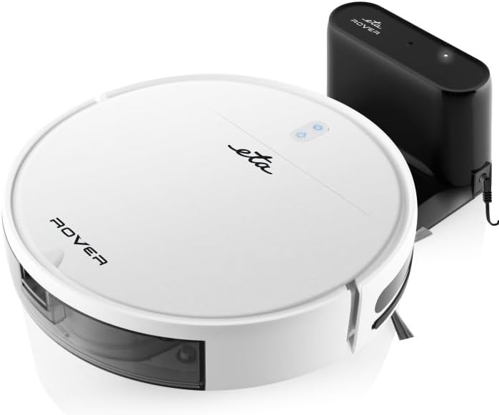 جاروبرقی رباتی ETA مدل Rover I دو در یک، تا ۱۱۰ دقیقه زمان کار، بسیار باریک ۷.۷ سانتیمتر، دارای اپلیکیشن هوشمند، موتور دیجیتال، ۴ حالت تمیز کردن، دارای اتصال تی، مناسب برای همه نوع فرش، سفید