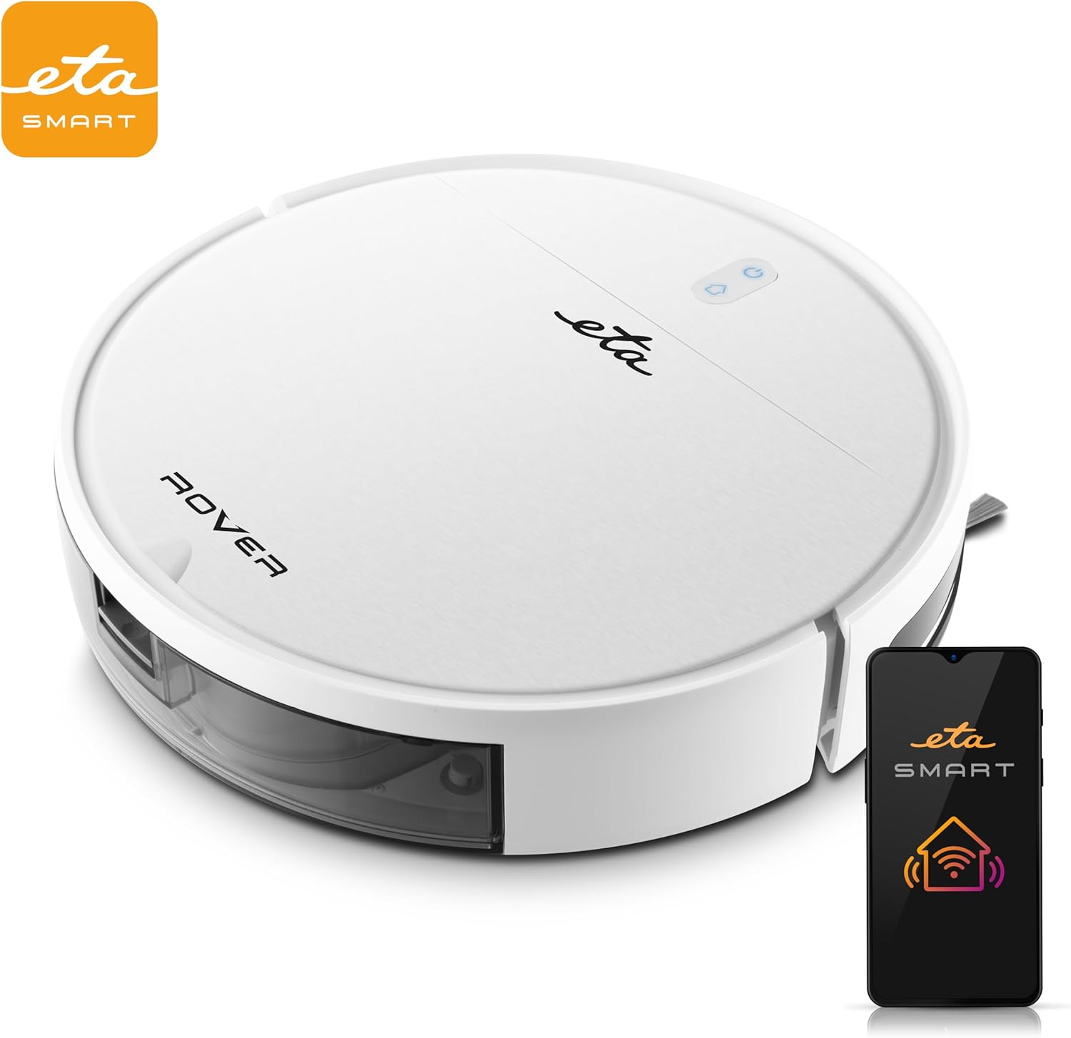 ETA Saugroboter Rover I 2in1 I Roboterstaubsauger I bis zu 110 Min Laufzeit I Extra Schlank 7.7.cm I Smart APP I Digitaler Motor I 4 Reinigungs Modi I Mopp Aufsatz I Alle Boden Teppichen I Weiß