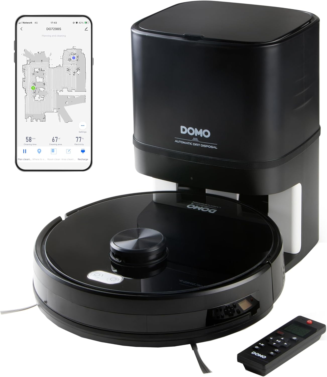 جاروبرقی ربات DOMO DO7298S با ایستگاه خلاء خودکار، سیستم تی و برنامه - با محافظت در برابر سقوط - عملکرد تایمر