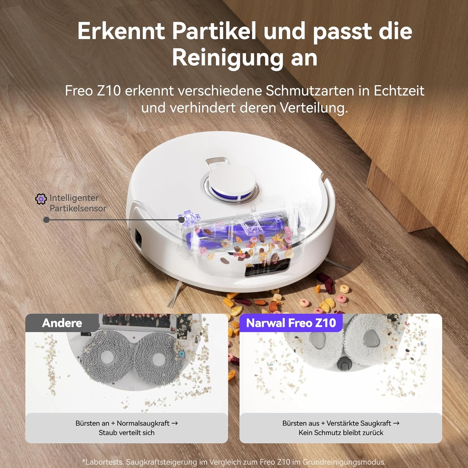 NARWAL Freo Z10 Saug- und Wischroboter selbstreinigend, Tangle-Free, 15.000 Pa, 75°C heißes Wasser Mop Waschen, Auto-Trocknung & Entleerung, Ausfahrbarer Mopp, Hindernisvermeidung, Für Tierhaare | قیمت یورویی 699€