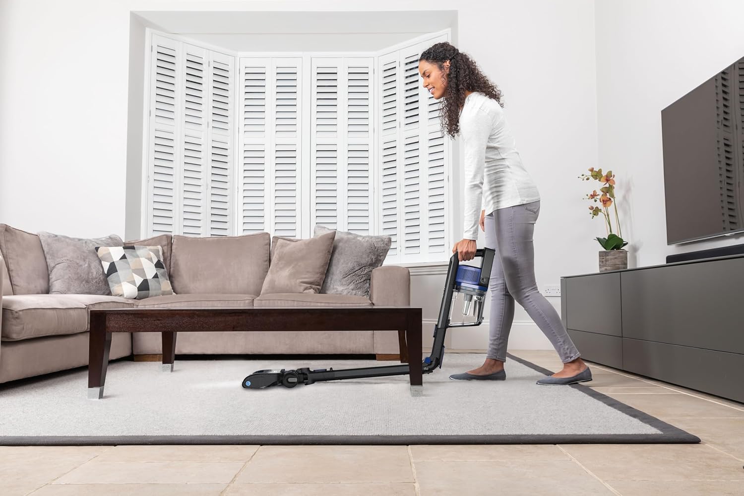 Up to 60 minutes run-time Enjoy an amazing run-time of up to 60 minutes and recharge the removable battery pack on or off the vacuum, wherever suits you – no need to charge at a fixed docking station. Perfect for whole-home cleans and quick clean-ups. Tiredofremovingtangledhairfromyourbrush-rollAntiHairWrapTechnologyactivelyseparatesandremoveshairasyouclean,helpingtoleavethebristlebrush-rolltangle-free.Perfectforlong,shortandpethair. Tired of removing tangled hair from your brush-roll Anti Hair Wrap Technology actively separates and removes hair as you clean, helping to leave the bristle brush-roll tangle-free. Perfect for long, short and pet hair. Easily clean under furniture, up high and in the car. Transform into a handheld vacuum to clean stairs, soft furnishings and hard-to-reach places with 2 included attachments. Flexology bends to reach and clean under low-lying furniture and folds for compact, freestanding storage at the touch of a button. | قیمت یورویی : 191.5€