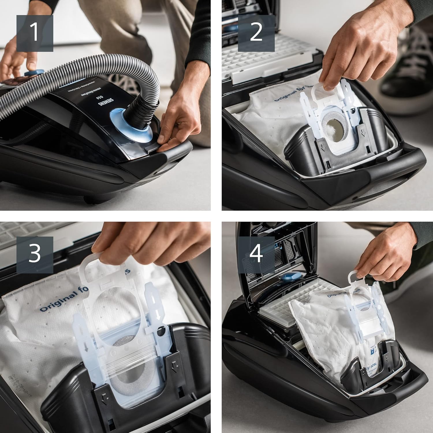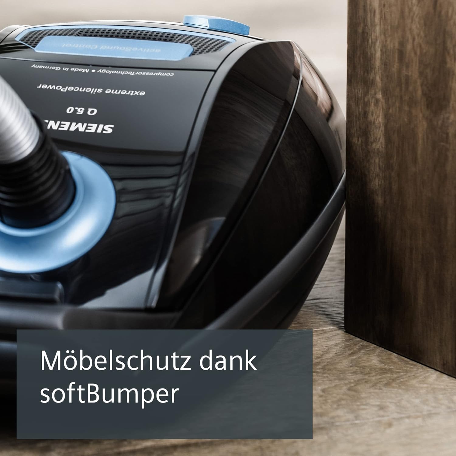 Siemens Staubsauger mit Beutel Q5.0 extreme silencePower VSQ5X1230, ideal für Allergiker, Hygiene-Filter, starke Saugleistung, Bodendüse für Parkett, Teppich, Fliesen, langes Kabel, 850 W, schwarz Single Schwarz | قیمت یورویی 134.99€