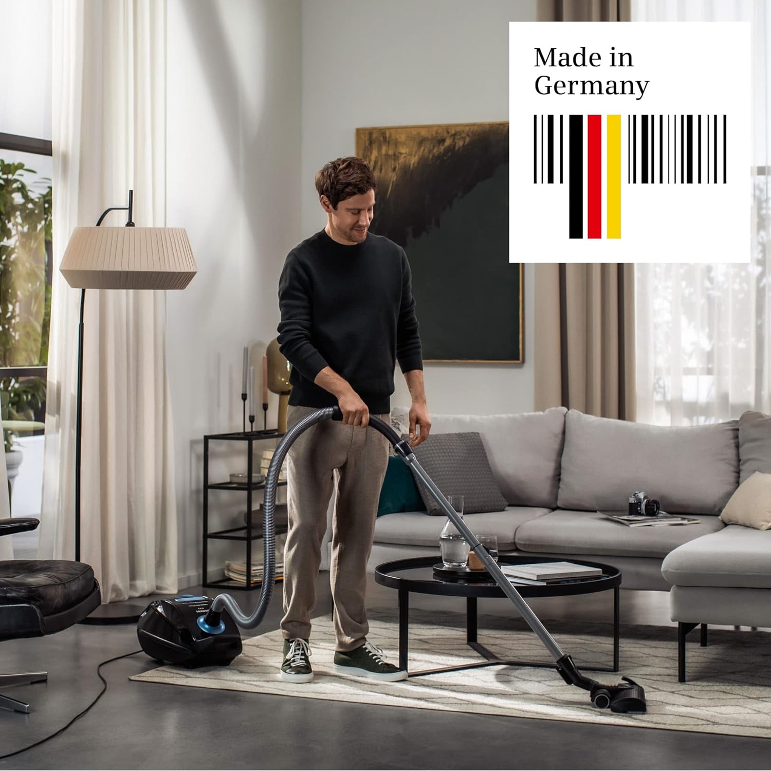 Siemens Staubsauger mit Beutel Q5.0 extreme silencePower VSQ5X1230, ideal für Allergiker, Hygiene-Filter, starke Saugleistung, Bodendüse für Parkett, Teppich, Fliesen, langes Kabel, 850 W, schwarz Single Schwarz لینک آمازون : https://www.amazon.de/dp/B007MP7OP0?th=1&psc=1 جمعآوری کامل گرد و غبار: فناوری کمپرسور با پروانههای فن آیرودینامیک و جریان هوای کاملاً هماهنگ برای جمعآوری کامل گرد و غبار فیلتر بهداشتی HEPA قابل شستشو: هوای خروجی از دستگاه، تمیزتر از هوای داخل خانه است. نیازی به خرید فیلتر جایگزین نیست. مناسب برای افراد مبتلا به آلرژی. شعاع عملکرد ۱۳ متر: کابل بسیار بلند برای برد بیشتر و تعویض کمتر پریز حجم کیسه گرد و غبار XL: برای تعویض کمتر کیسه و هزینههای پیگیری کمتر دامنه تحویل: جاروبرقی با کیسه، نازل مخصوص درز و روکش که در دستگاه تعبیه شده است، نازل غلتکی قابل تعویض، لوله تلسکوپی قابل تنظیم