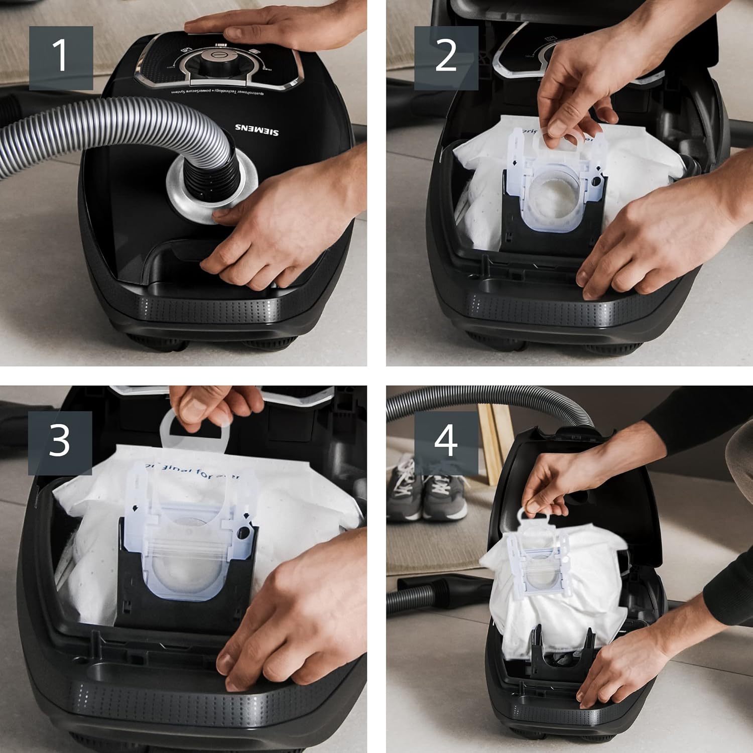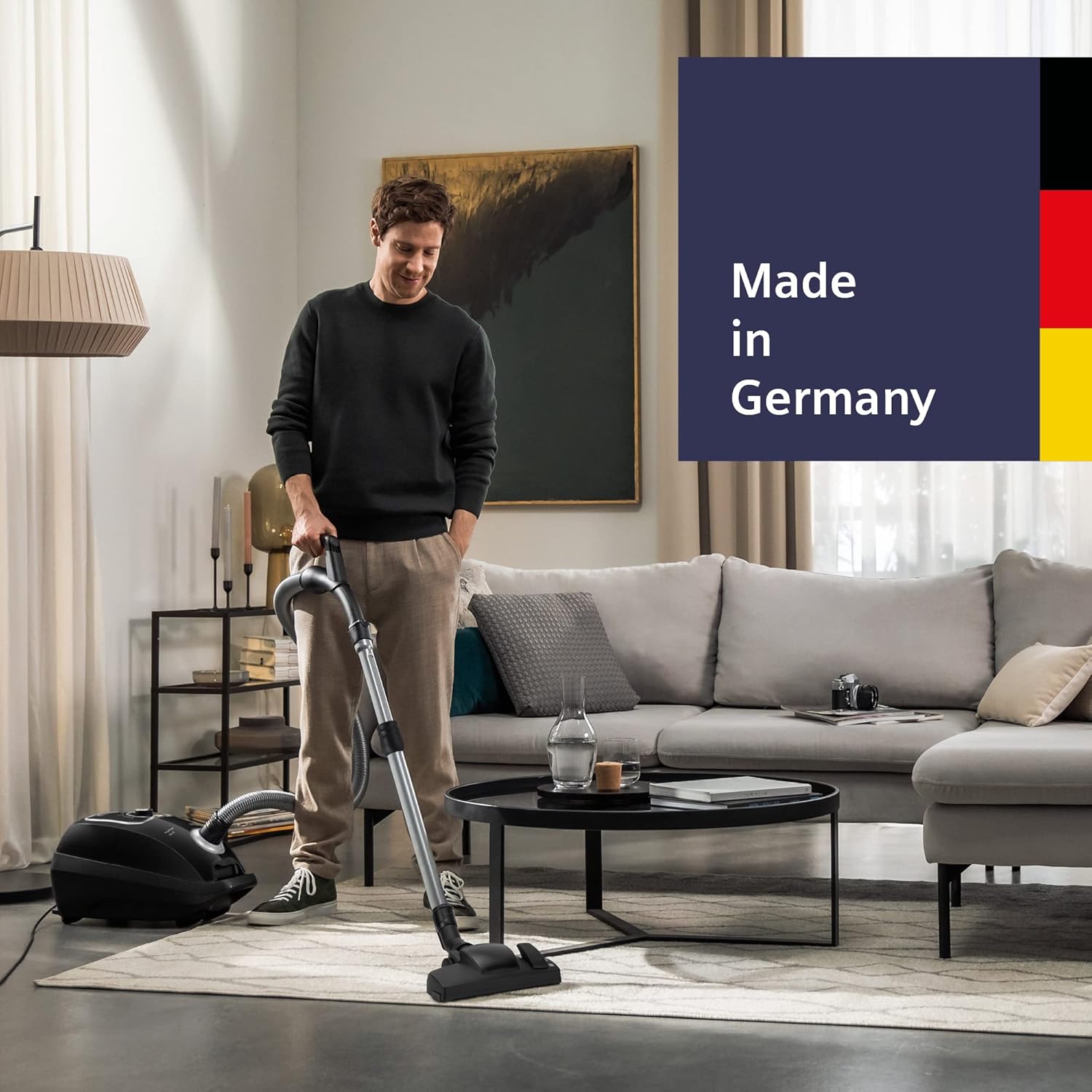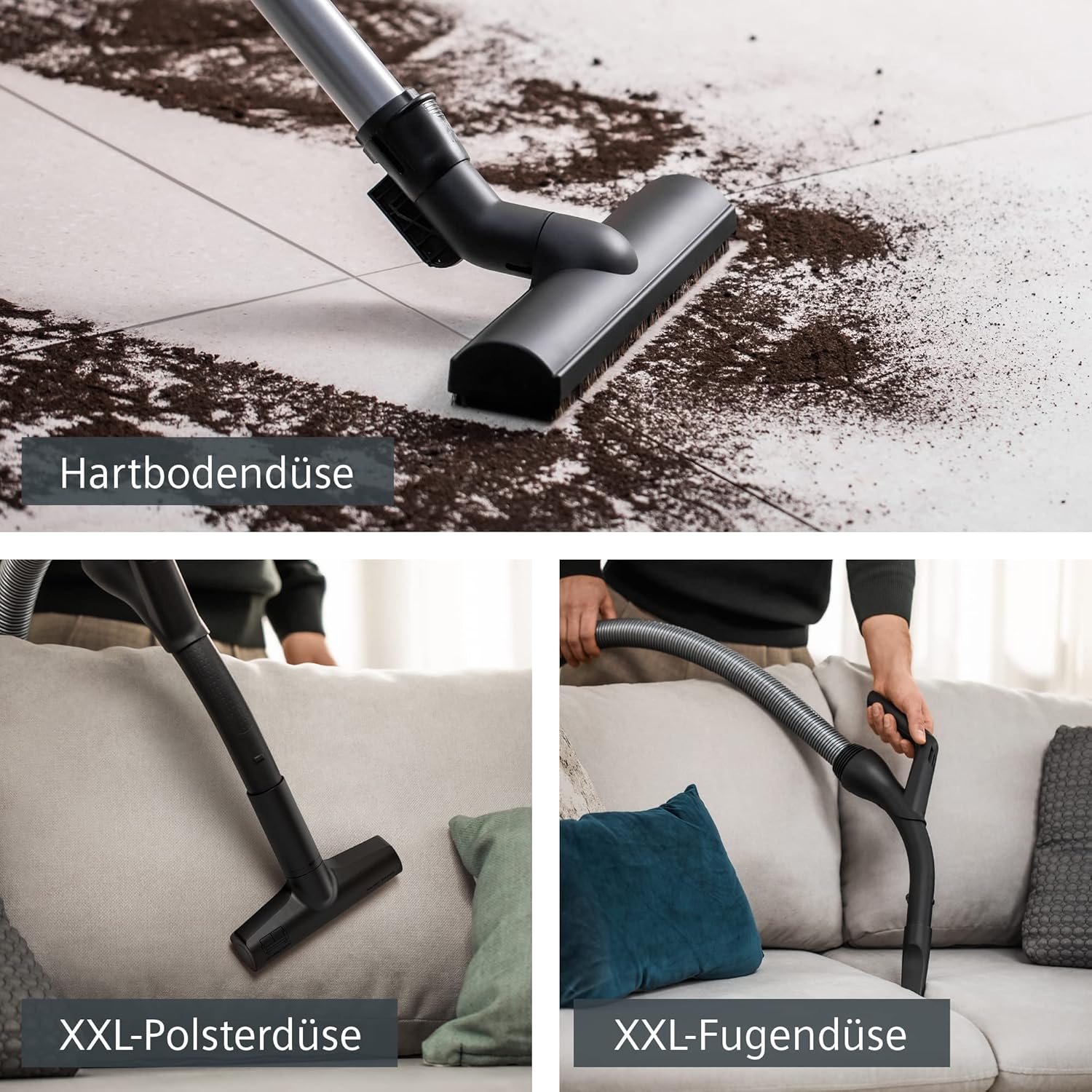 جاروبرقی SIEMENS با کیسه Z7.0 VSZ7X500، ایدهآل برای افراد مبتلا به آلرژی، فیلتر بهداشتی، بسیار بیصدا، نازل کف برای پارکت، فرش و کاشی، نازل روکش XXL، نازل درز XXL، کابل بلند، 650 وات، مشکی، 69 دسیبل(A) بیصدا، برنده تست 2024