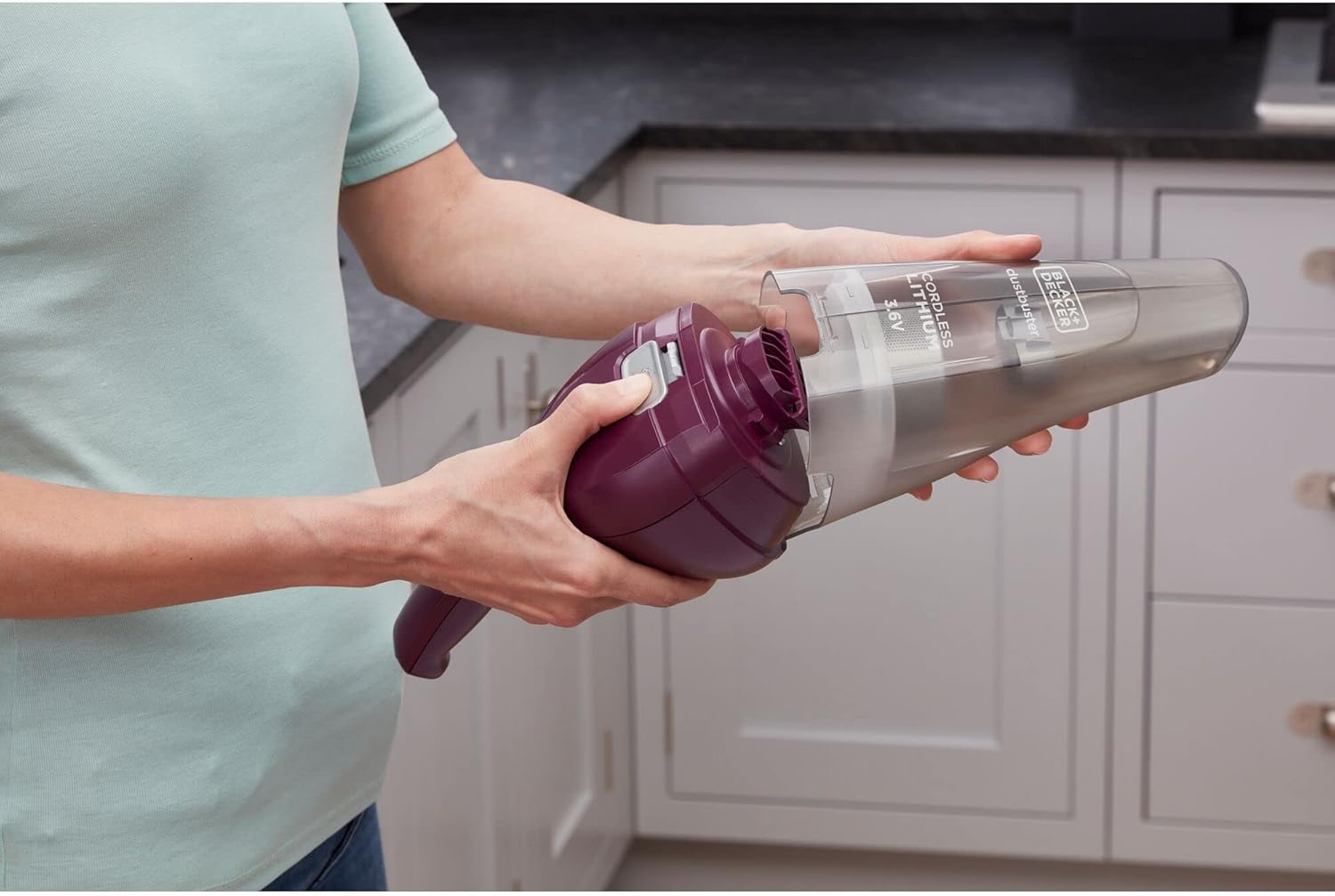 جارو برقی دستی شارژی BLACK+DECKER Dustbuster (3.6 ولت لیتیوم، بدون کیسه + جارو شارژی دستی، دهانه مکش گسترده، ظرف گرد و غبار قابل جابجایی، شامل ایستگاه شارژ با پایه دیواری) NVC115W