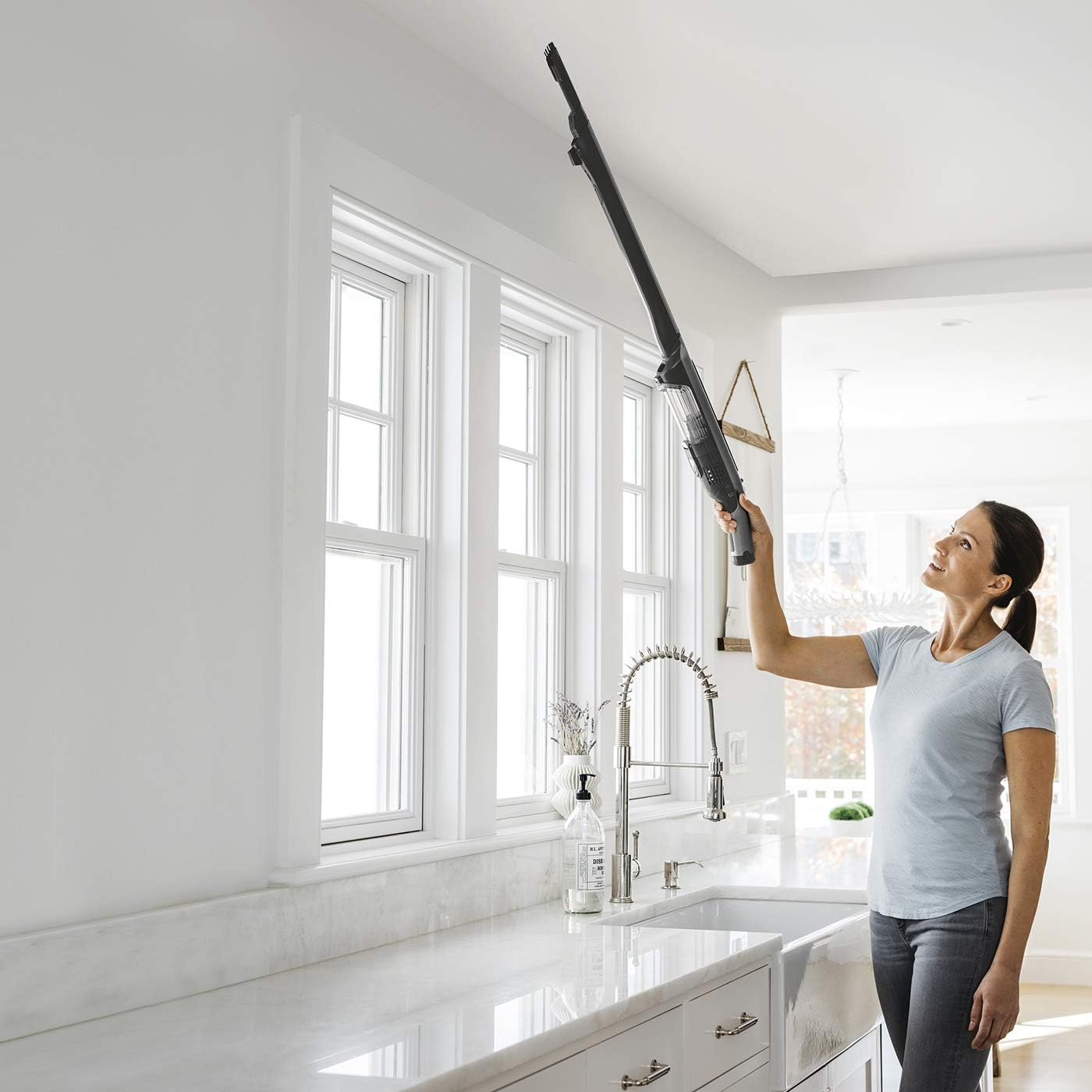 VIELSEITIG: Schlankes 2-in-1 kabelloses Reinigungssystem. Wechseln Sie vom Bodenmodus in den Handheld-Modus, um problemlos Arbeitsplatten, weiche Möbel, hohe Decken und den Boden zu reinigen BODENMODUS: Die Anti-Hair-Wrap-Technologie hilft, Krümel, Staub und Tierhaare schnell von Böden zu entfernen und eignet sich perfekt zum Reinigen unerwarteter Verschmutzungen HANDHELD-MODUS: 70 Luftwatt leistungsstarke Saugkraft in einem ultraleichten Handstaubsauger (Im BOOST-Modus getestet nach IEC 62885-2, cl 5.8.) IMMER AM AUFLADEN: Lädt sich während der Aufbewahrung auf der Basis auf. Bis zu 16 Minuten Laufzeit (im ECO-Modus, mit nicht motorisiertem Aufsatz) BEINHALTET: Shark 2-in-1 WandVac System (EU-Stecker), Fugendüse und Multi-Oberflächen-Aufsatz. Einfach zu entleerender Staubbehälter: 0,13L. Gewicht: 920g, Grau | قیمت یورویی : 306.62€