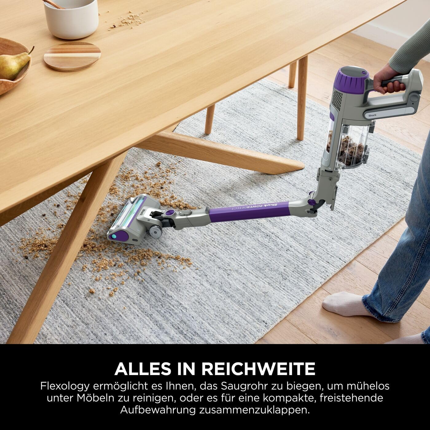 DER BESTE* AKKU-STAUBSAUGER VON SHARK MIT NEUER REVERSE CLEAN-TECHNOLOGIE (*Basierend auf der durchschnittlichen Leistung im leeren Zustand, gemäß IEC 2885-2, Abschnitte 5.1, 5.2, 5.4 und 5.3 und 5.5 in Vorwärts- und Rückwärtsstartrichtung). DUOCLEAN DETECT: Erkennt Schmutz, Ecken, Kanten und Bodentyp und optimiert die Leistung. Aufnahme von Tierhaaren: Der Bürstenkopf ist für Tierhaare geeignet und erfasst noch mehr Haare. (*im Vergleich zur originalen DuoClean Düse.) SCHNELLE, EFFIZIENTE REINIGUNG: Viele kabellose Staubsauger nehmen Schmutz nur dann gut auf, wenn sie vorwärts bewegt werden. Mithilfe des Flossendesigns wurde die DuoClean-Detect-Bodendüse so entwickelt, dass sie vorwärts UND rückwärts arbeitet. IDEAL FÜR HAUSHALTE MIT HAUSTIEREN: Anti Hair Wrap Plus sorgt für kraftvolle Aufnahme der Haare und reinigt die Bürstenrolle. FLEXOLOGY: Der Stab ist biegsam für bequemes Reinigen unter Möbeln. Verwandelt sich mit 3 Aufsätzen in einen Handstaubsauger. BEINHALTET: Shark PowerDetect Akku-Staubsauger, motorisierter Tierhaaraufsatz, Fugendüse, Multi-Oberflächen-Aufsatz Fassungsvermögen: 0,7 Liter Gewicht: 3,71 kg Farbe: Java-Grau | قیمت یورویی : 349.99€