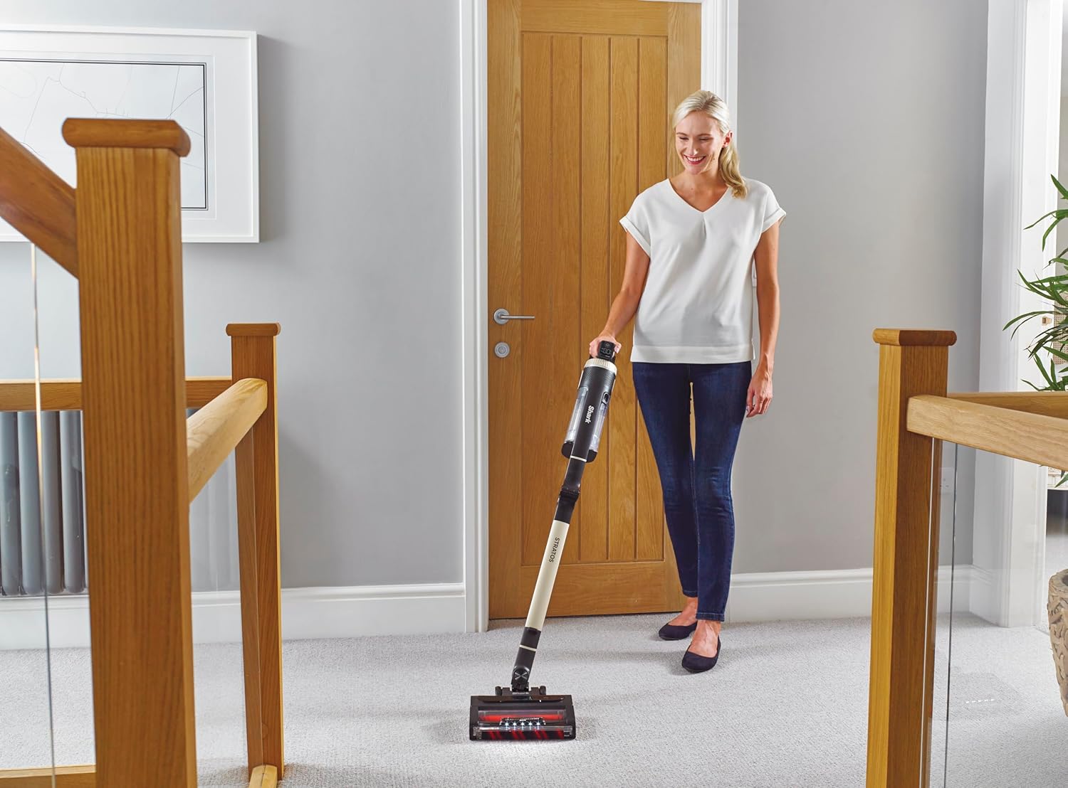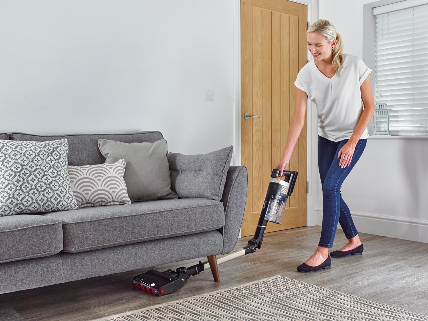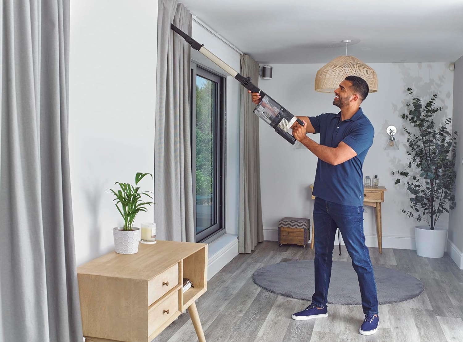 CLEAN SENSE IQ: Erkennt Schmutz, den Sie nicht sehen können, und passt die Reinigungsleistung automatisch an, um bis zu 50 % mehr Schmutz aufzunehmen (im Vergleich zum Shark IZ400EUT im ECO-Modus) DUOCLEAN + POWERFINS PLUS: Die beste Haarentfernung von Shark. Ant-Hair-Wrap entfernt Haare von der Bürstenrolle während der Reinigung. Dank DuoClean gleiten Sie einfach zwischen verschiedenen Böden wie Teppich und Hartböden hin und her BIS ZU 60 MINUTEN LAUFZEIT*: Der abnehmbare Akku kann überall aufgeladen werden. Versteckter Staub wird durch LED-Leuchten sichtbar gemacht. Modi für Teppiche und Hartböden. (*im ECO-Power-Modus, mit nicht motorisiertem Aufsatz) HANDREINIGUNG: Verwandelt sich auf Knopfdruck in einen Handstaubsauger, der sich mit dem mitgelieferten Zubehör perfekt für die Reinigung von Treppen, Polstermöbeln, im Auto und noch mehr eignet BEINHALTET: Shark Stratos kabelloser Akku-Staubsauger , 1 Akku, Ladestation, motorisierte Tierhaar-, Fugen- und Multi-Oberflächen-Aufsätze, Anti-Allergen-Bürste, Tasche. Gewicht 3,97 kg. Anthrazit/Messing 5 JAHRE GARANTIE: 2 Jahre Akkus, wenn Sie sich bei Shark registrieren | قیمت یورویی : 403.57€