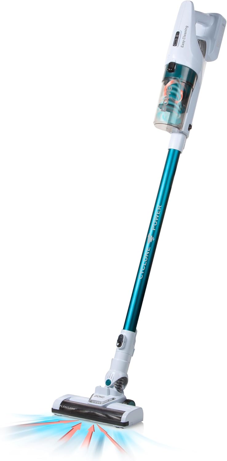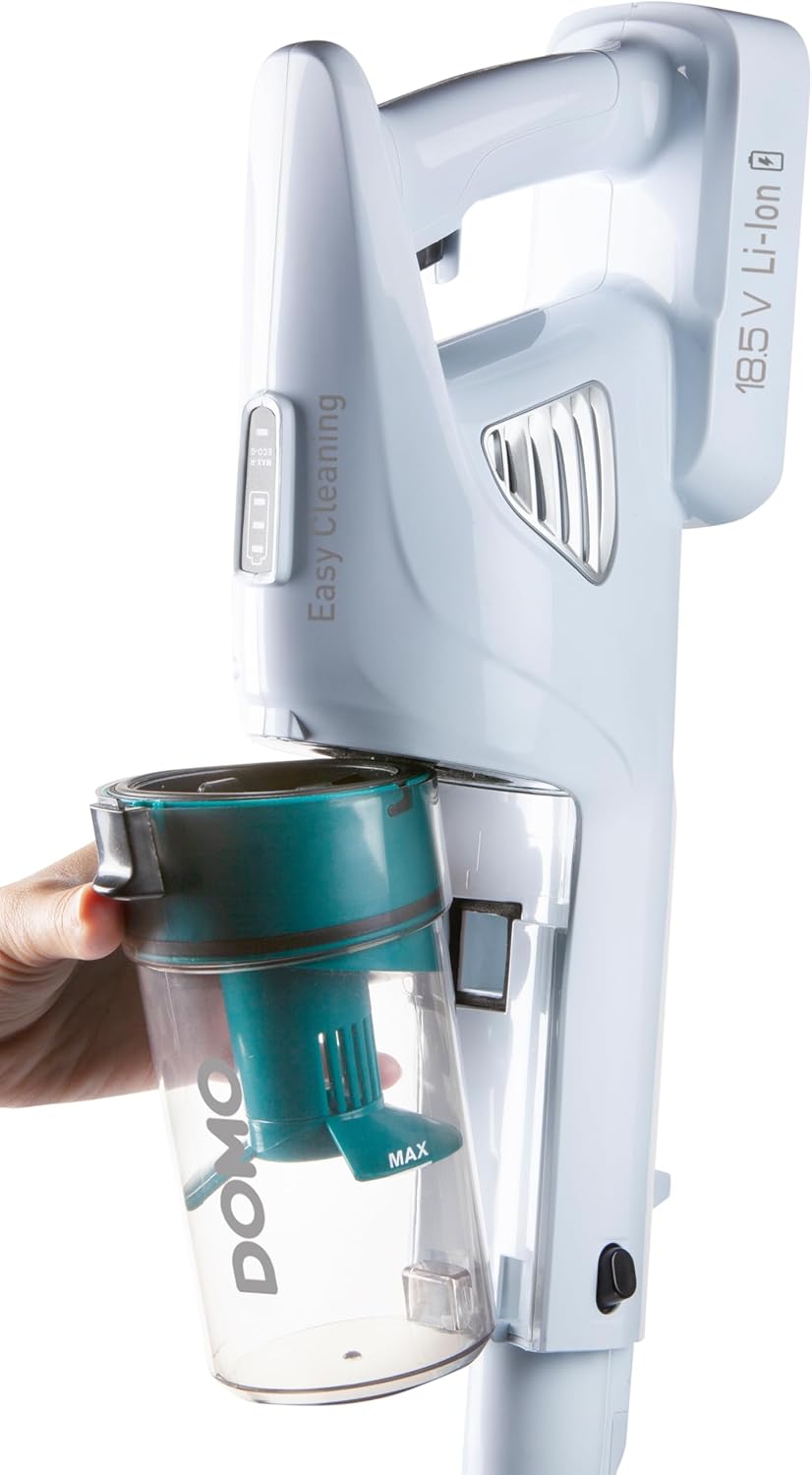 DOMO DO233SV Akku-Stielstaubsauger - 2in1-18,5 V - Litium-Ionen-Akku -Zyklonsystem - Alurohr - Weiß/hellblau | قیمت یورویی 77.92€