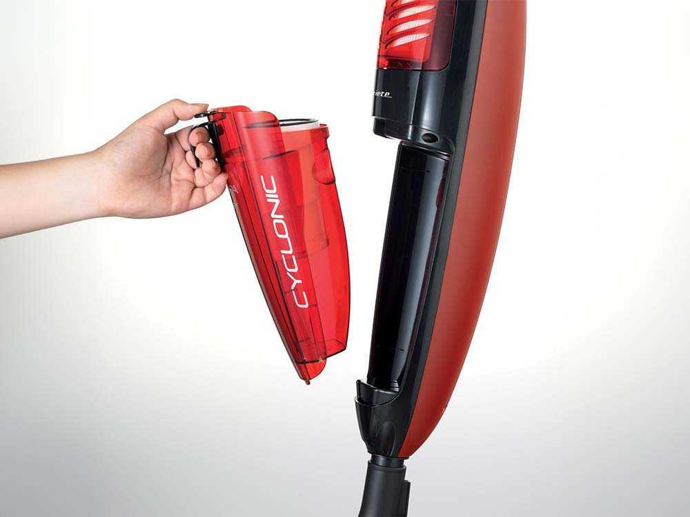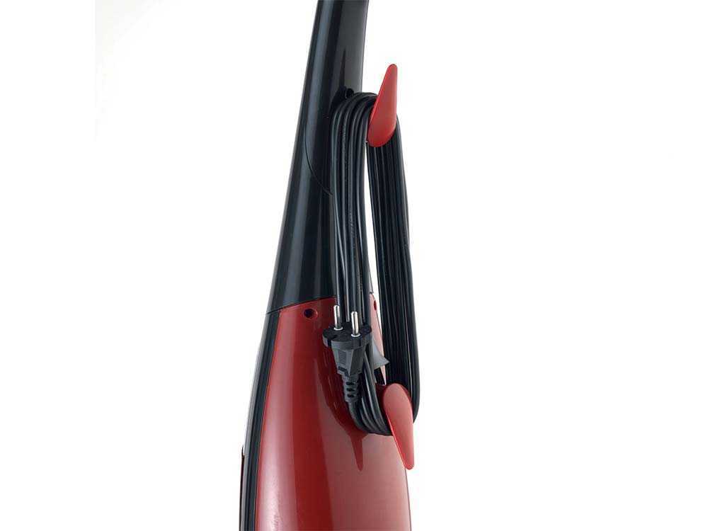 طراحی این مدل شامل دسته تاشو برای فضای کم، بدنهی قرمز خوش رنگ، و قدرت مکش مناسب برای تمیزکاری سطوح مختلف مانند پارکت، فرش، و مبلمان است.