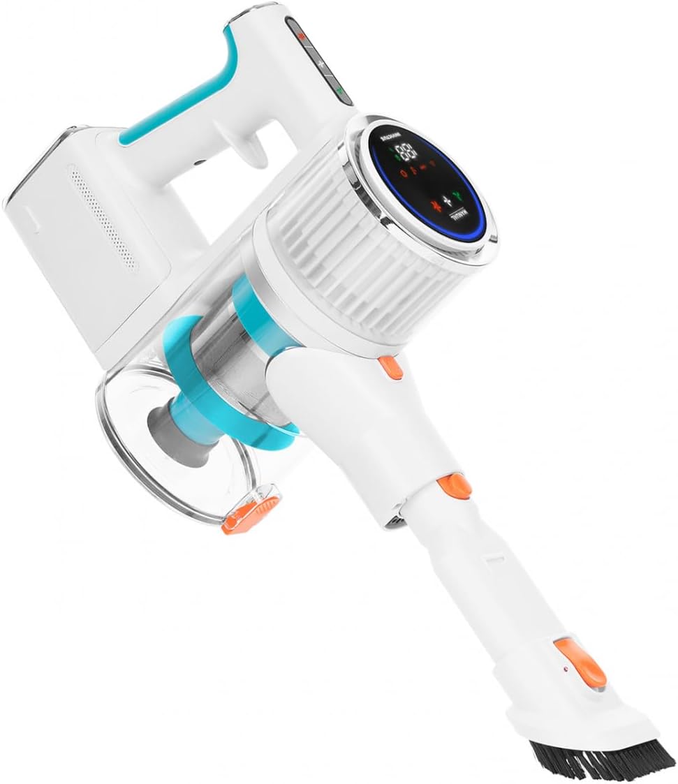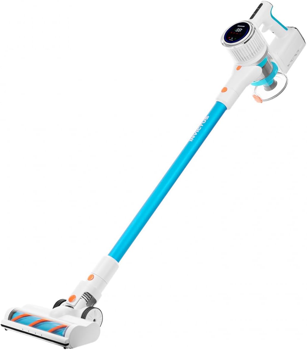 Genius Invictus X7 Facelift Akku Staubsauger kabellos mit HEPA Filter, Akkustaubsauger Handstaubsauger beutellos bis zu 60 Minuten und 380 W, ultra leicht, 12 TLG, Blau/Weiß لینک آمازون : https://www.amazon.de/dp/B0CF9WN4RD?th=1&psc=1 موتور BLDC با کارایی بالا با توان 380 وات 25 درصد قدرت مکش بیشتر نسبت به مدل قبلی صفحه نمایش LED سطح باتری، حالت ها و پیام های خطا را نشان می دهد صفحه لمسی LED با 3 حالت Eco، Normal و Boost باتری لیتیوم یونی با حداکثر 60 دقیقه زمان کار و 15 دقیقه در حالت بوست سیستم فیلتر سه طرفه با فیلتر چند سیکلون و فیلتر HEPA باتری قابل تعویض برای دوبرابر زمان اجرا عملکرد Quick-Clean: ظرف گرد و غبار را با لمس یک دکمه خالی کنید