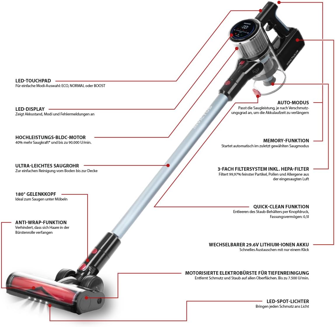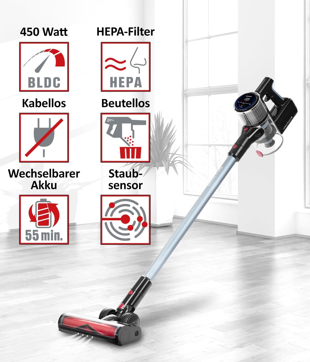 Genius Invictus X9 Facelift Deluxe Staubsauger Kabellos 26-TLG., Nass Trocken Akku Staubsauger bis zu 55 Min Teppich Tierharre Auto, HEPA Filter, LED, Stielstaubsauger Touchscreen, Ladestation | قیمت یورویی 584.94€