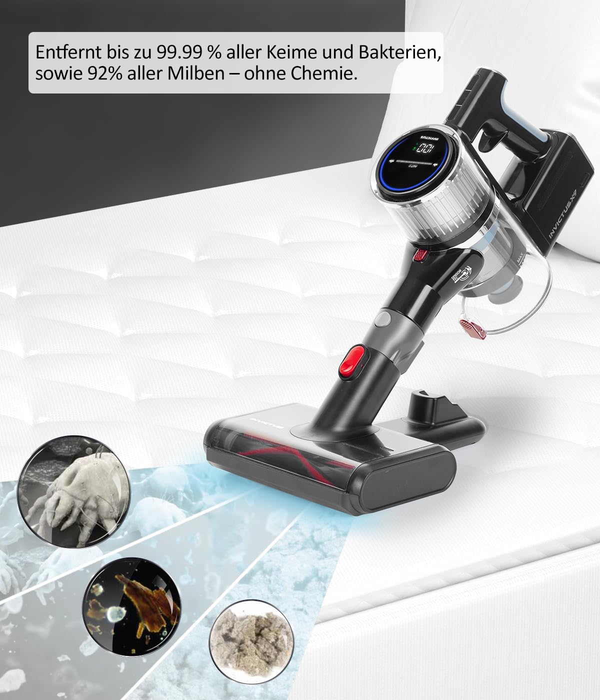 Die Invictus X-Reihe zeichnet sich durch führende Technik, absolute Power und starke Saugleistung aus Mit der Bürste können Staub, Keime, Hausstaubmilben auf Matratzen, Polstern und Teppichen entfernt werden Das UV-C-Licht wirkt desinfizierend und das ganz ohne Chemie Mit dem UV-Licht Bürsten Set erhalten Sie das Gesamtpaket für eine effiziente Tiefenreinigung Das perfekte Zubehör für Ihren Invictus X9 garantiert Sauberkeit und Hygiene | قیمت یورویی : 29€