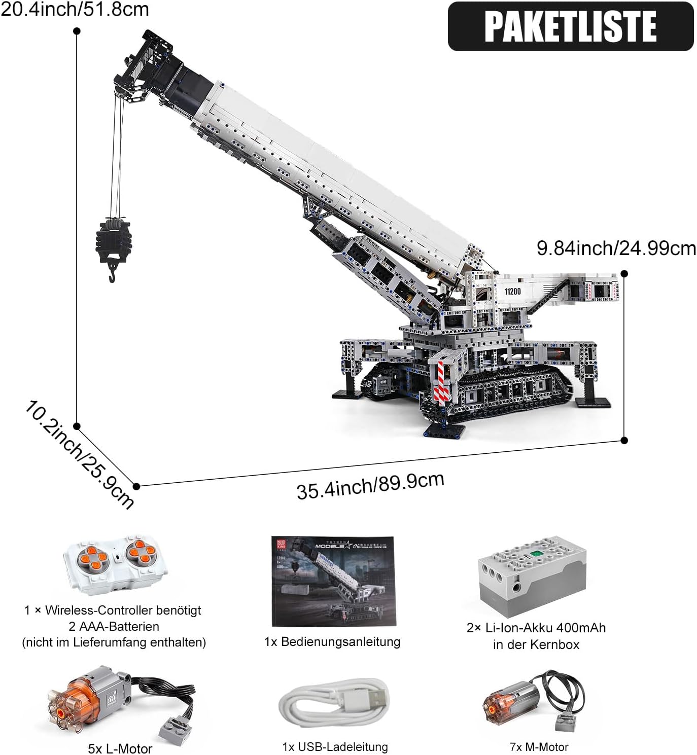 Einzelverpackung: Jedes Zubehörteil kommt separat verpackt und mit leicht verständlichen Anweisungen (Französisch nicht garantiert). Einfach zu installieren. Technischer Kran mit 12 Motoren: RC Technic Bausatz mit 4000 Teilen, inklusive Elektronik, Motoren, Fernbedienung und Batterie. Detaillierte Ausführung mit realistischen Funktionen (7 L-Motoren, 5 M-Motoren, 1 Fernbedienung, 2 Lithium-Batteriekästen). Programmierbar: Steuerung per Fernbedienung oder Smartphone über Bluetooth. Zwei Modi: Fernsteuerung und Programmierung. Einfach zu bedienen. USB-betrieben: Mit leistungsstarkem Motor und 4,07 V/400 mAh Lithium-Ionen-Akku, aufladbar über Steckdose, Powerbank, Laptop. Fernbedienung benötigt 2 AAA-Batterien (nicht enthalten). MOULD KING Bausteinsets für Kinder – Die Geschenkverpackung macht dieses Set zu einer tollen Geschenkidee für Geburtstage, Kindertag, Weihnachten oder Neujahr. | قیمت یورویی : 239.99€