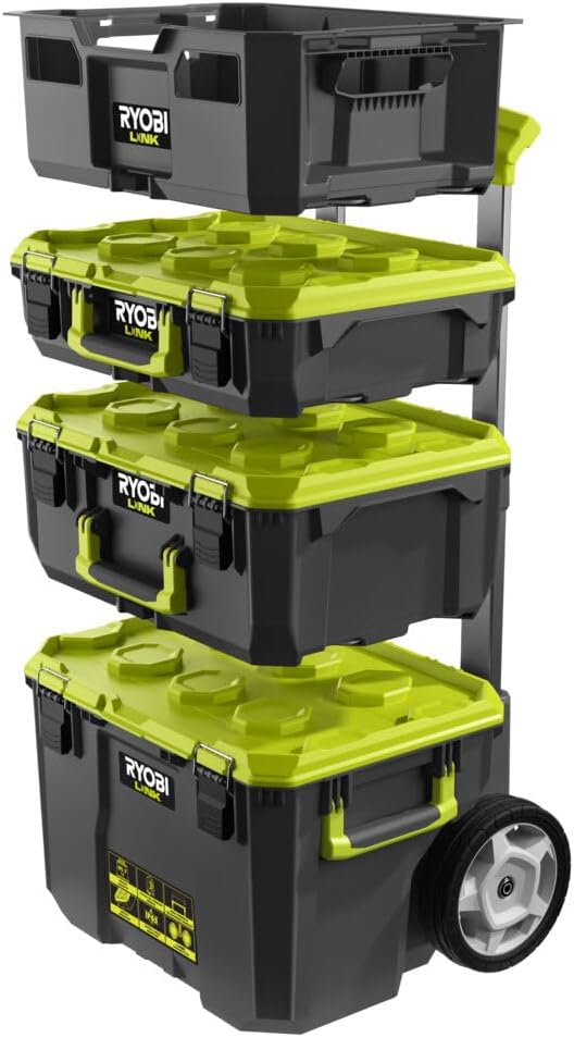 جعبه ذخیره سازی RYOBI LINK جعبه ابزار RSL201 شامل چرخ دستی (حداکثر ظرفیت بارگیری 90 کیلوگرم، ضد آب طبق IP65)