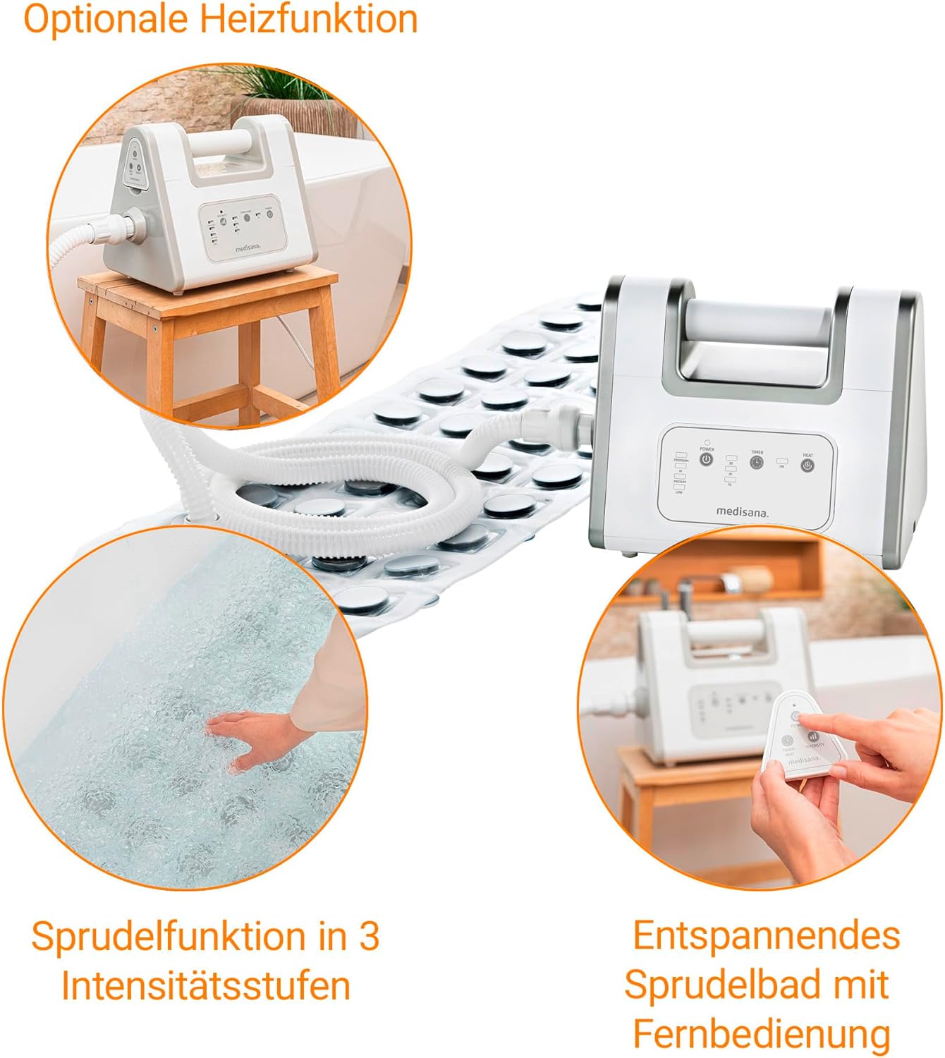 Medisana BBS Luftsprudelbad, Sprudelmatte Badewanne, Whirlpool Matte für die Badewanne, inkl. Aromaspender, 3 Intensitätsstufen, Spa für Zuhause, Wellness Badewannenzubehör | قیمت یورویی 99.99€