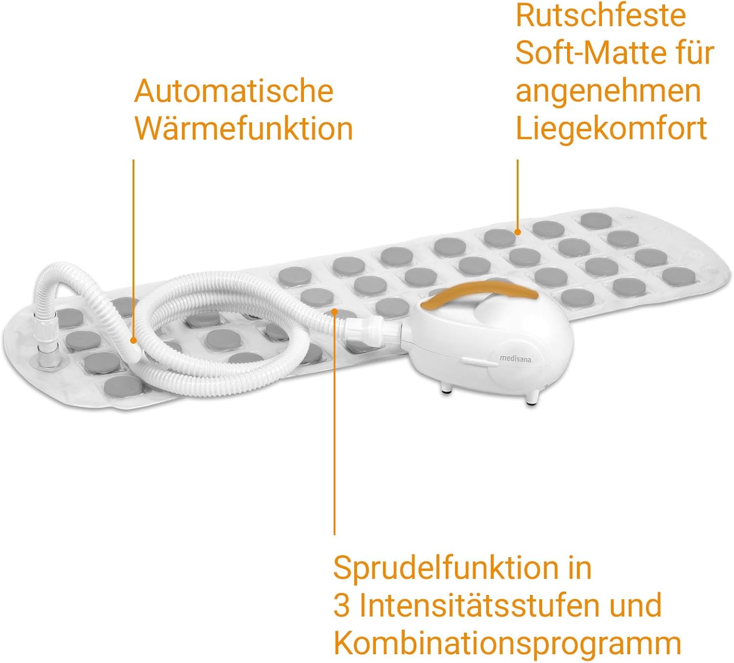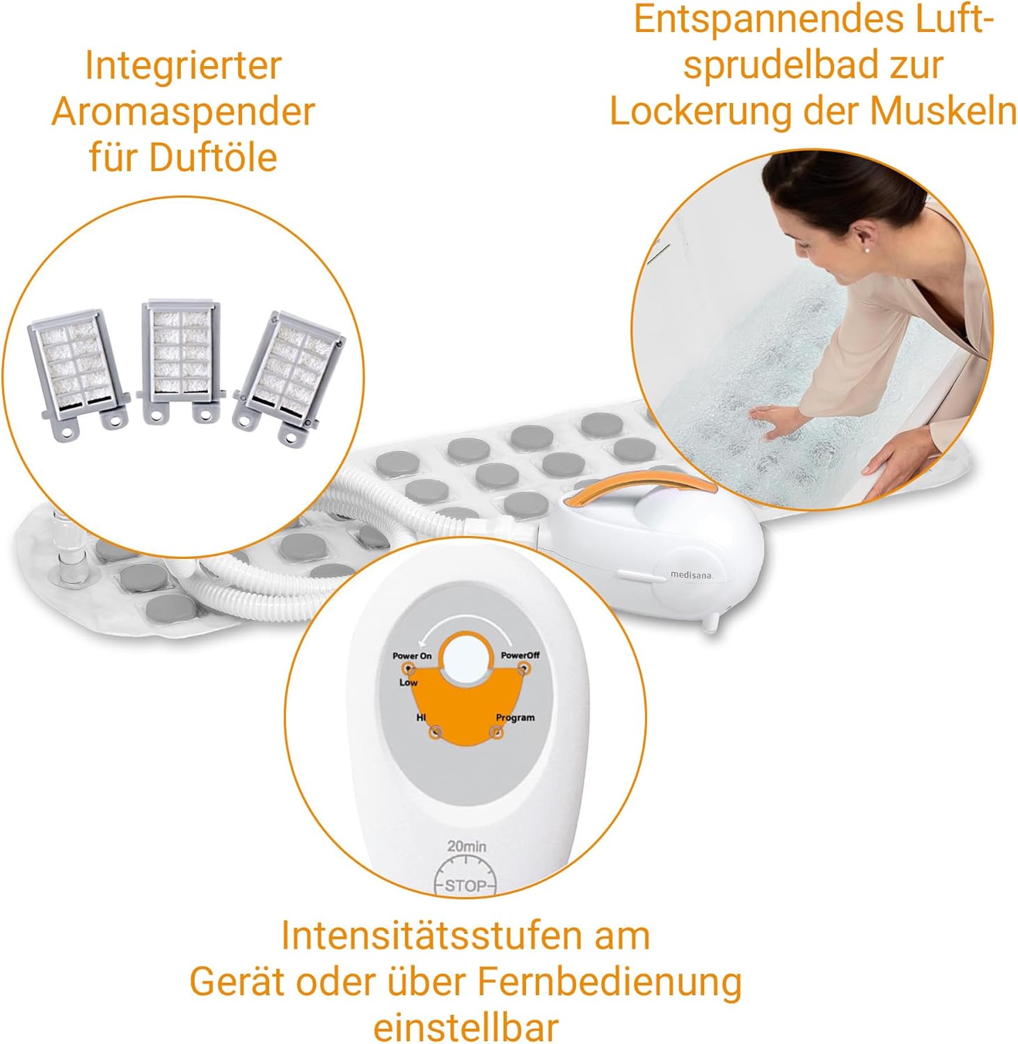 Medisana MBH Luftsprudelbad, Sprudelmatte Badewanne, Whirlpool Matte für die Badewanne, inkl. Aromaspender, 3 Intensitätsstufen, Spa für Zuhause, Wellness Badewannenzubehör | قیمت یورویی 86.73€