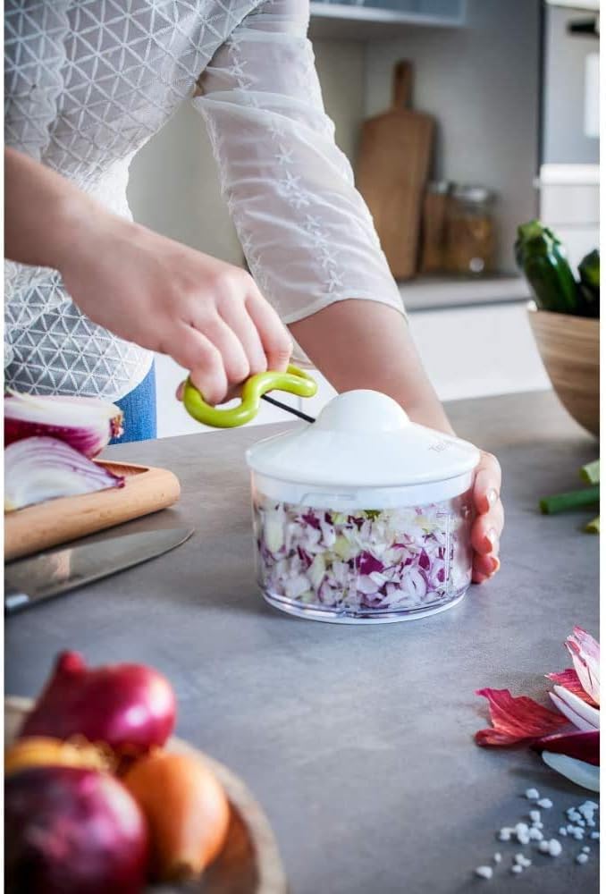 Tefal 5-Sekunden Zerkleinerer K13304 | Ohne Strom | Fassungsvermögen: 500 ml | Multizerkleinerer für Gemüse, Obst, Zwiebeln, Nüsse, Knoblauch, Babynahrung | Weiß/Grün/Transparent | قیمت یورویی 14.99€