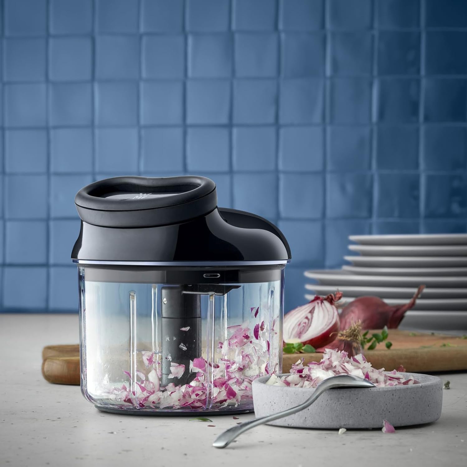 WMF Gourmet Gemüseschneider manuell mit Seilzug, Multizerkleinerer manuell 900ml, ideal für Gemüse, Zwiebeln, Knoblauch, Nüsse, Kräuter oder Obst, Kunststoff ohne Extra-Klinge Single | قیمت یورویی 26.57€