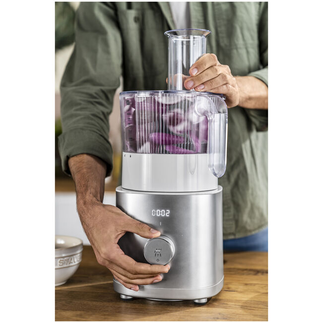 خردکن چندکاره زولینگ آلمان مدل ZWILLING Enfinigy 1010598 با طراحی مدرن و عملکرد قدرتمند، مناسب برای خرد کردن، ریز کردن و آسیاب کردن مواد غذایی مختلف است. این دستگاه با ظرفیت 1.2 لیتر و تیغههای استیل ضد زنگ، انتخابی ایدهآل برای آشپزخانههای حرفهای و خانگی میباشد.