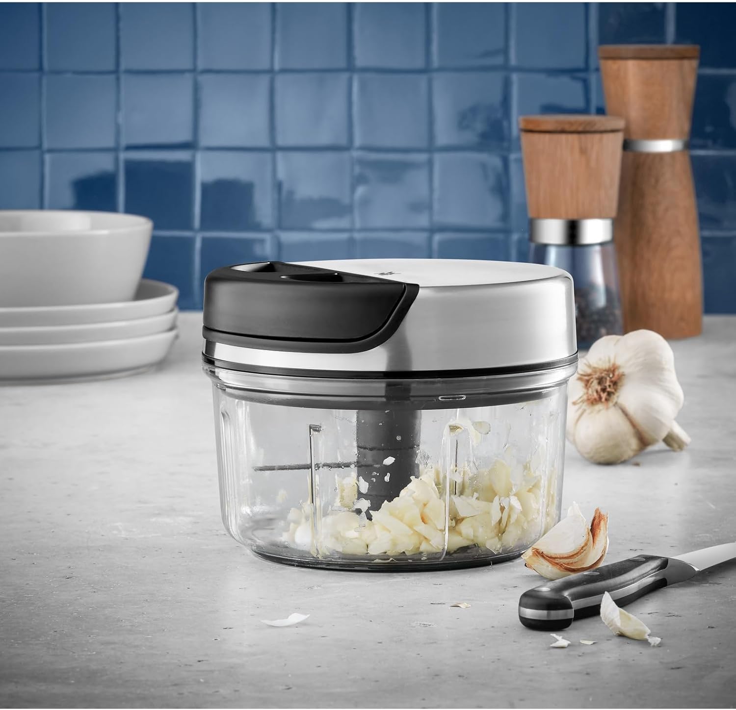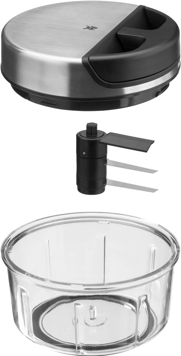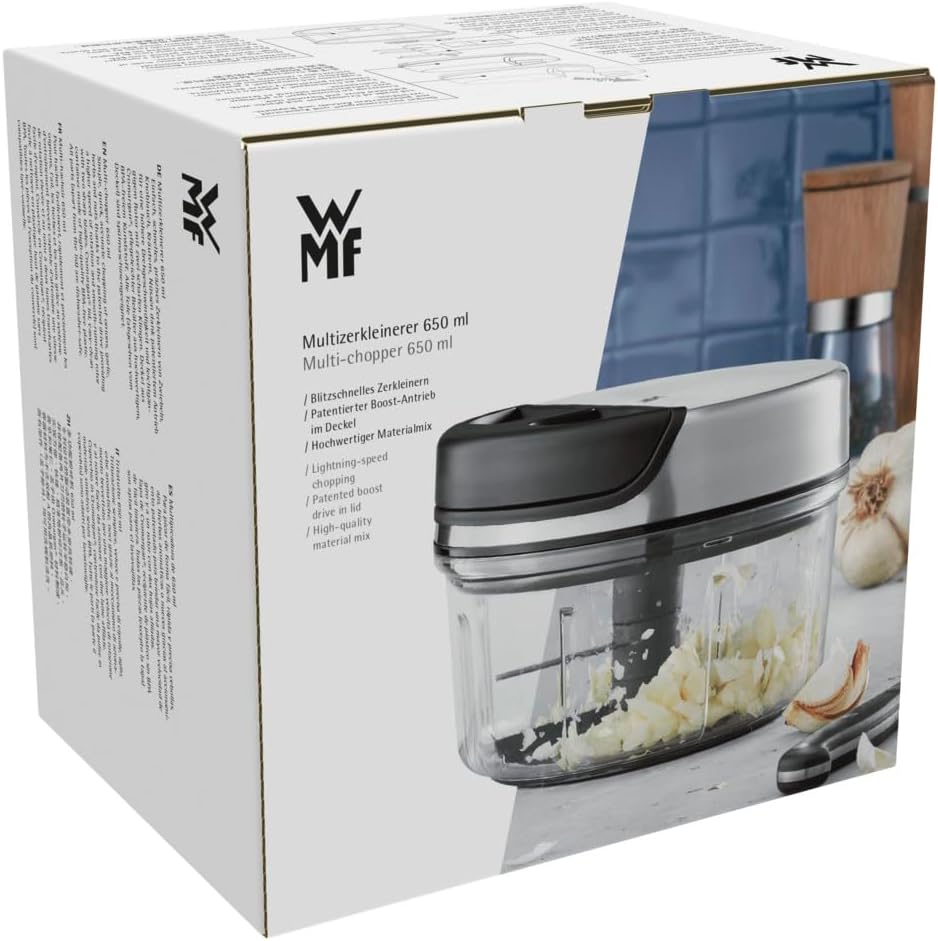 WMF Multi-Zerkleiner 650ml, manuell mit Seilzug, Kunststoff-Mixbehälter, ergonomischer Griff, Gemüseschneider ideal für Gemüse, Zwiebeln, Knoblauch, Nüsse, Kräuter oder Obst, Edelstahl/schwarz | قیمت یورویی 40.45€
