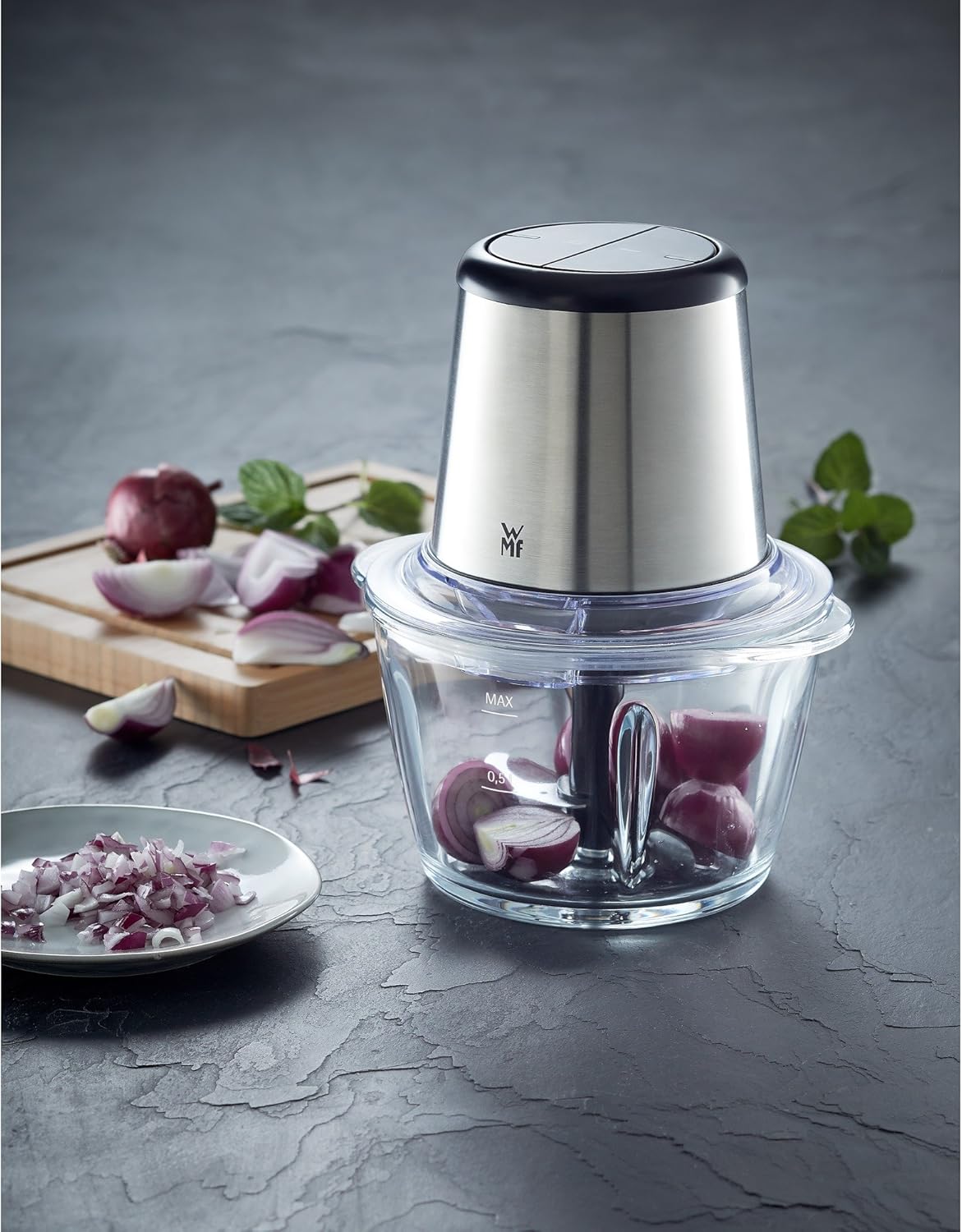خردکن WMF مدل KULT X Edition یک دستگاه حرفهای، زیبا و پرقدرت از برند نامآشنای آلمانی WMF است. این خردکن با طراحی ظاهری خاص و مدرن، مجهز به موتوری قدرتمند با توان 320 وات و تیغههای تیز از جنس استیل ضدزنگ است که انواع مواد غذایی مانند سبزیجات، میوهها، مغزیجات، پیاز و حتی گوشت را بهراحتی خرد میکند.