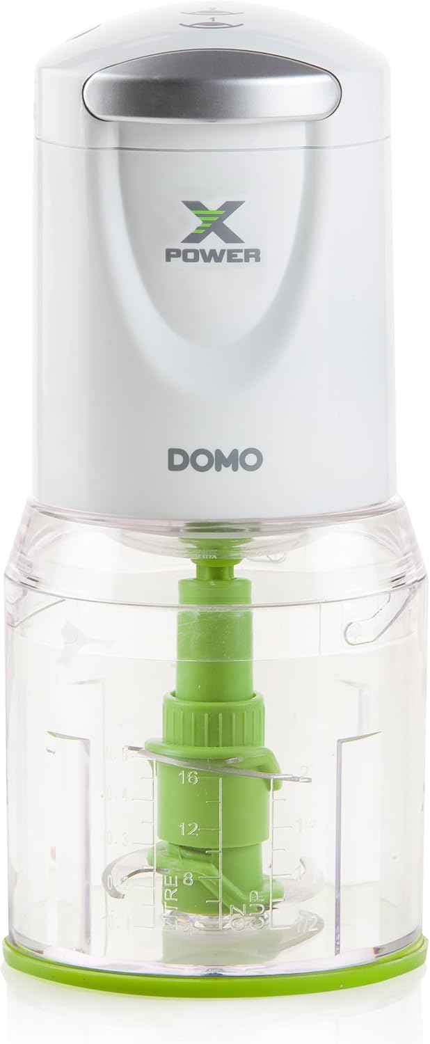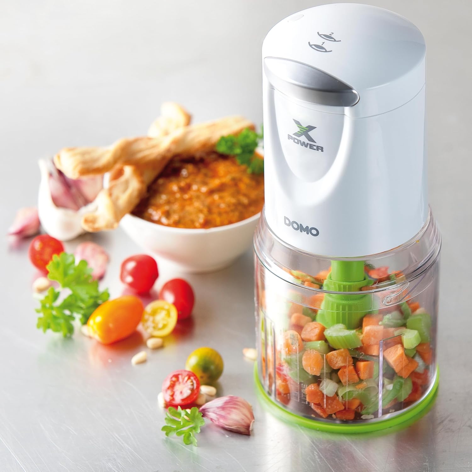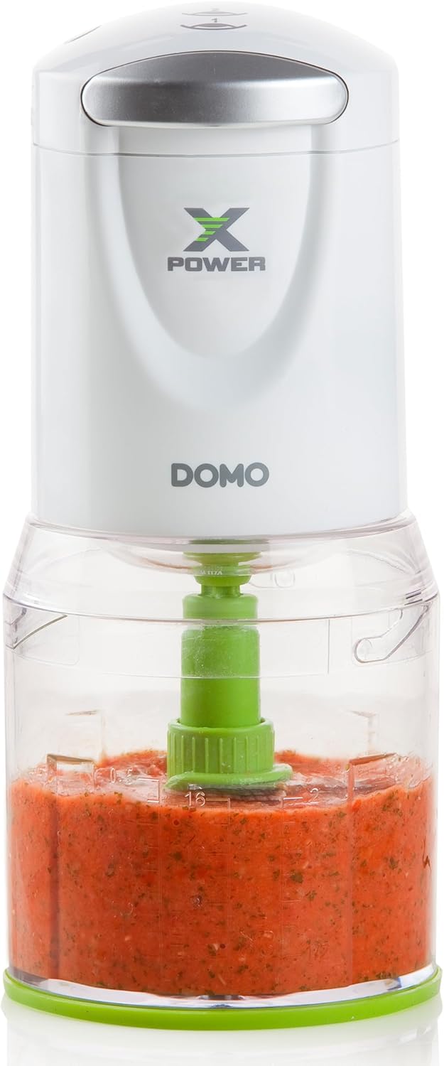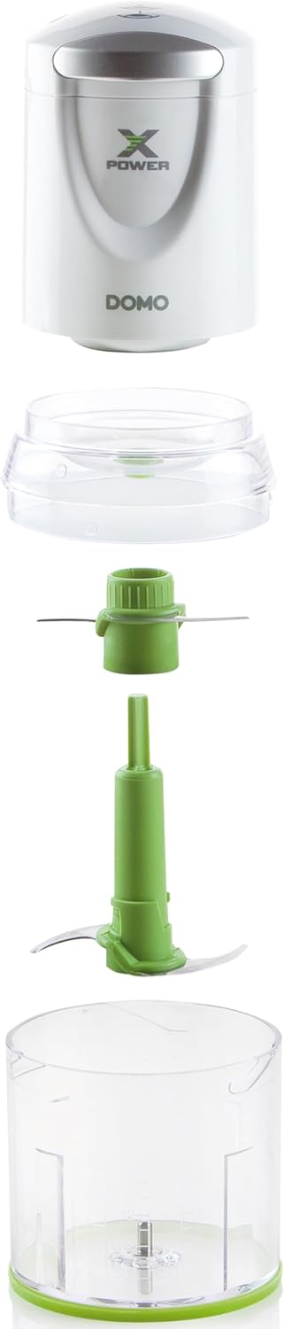 VIERMESSER‑SYSTEM FÜR PRÄZISE ERGEBNISSE – Der DOMO Multizerkleinerer mit Xpower Quad‑Blade hackt effektiv Kräuter, Gemüse, Eis oder Nüsse für feine Saucen oder Pürees KOMPAKT UND LEISTUNGSSTARK – Dieser elektrischer Zerkleinerer mit 400W und 0,5l Behälter ist ideal für die tägliche Küchenarbeit, vom Dip bis zum Smoothie ZWEI GESCHWINDIGKEITSSTUFEN – Die niedrigere Stufe eignet sich zum Hacken, die höhere zum feinen Pürieren – vielseitig einsetzbar für verschiedene Texturen KOMPLETT SPÜLMASCHINENFÄHIG – Alle abnehmbaren Teile dieses elektrischer Multi‑Zerkleinerer sind spülmaschinengeeignet für einfache und schnelle Reinigung SICHERHEIT UND EINFACHE HANDHABUNG – Deckel verriegelt sich automatisch, Klingen stoppen erst nach 15Sekunden – ideal als multifunktionaler Zerkleinerer für die ganze Familie INKLUSIVE REZEPTBOOKLET FÜR INSPIRATION – Die elektrische Multizerkleinerer‑Lieferung enthält ein Kreativbuch, das köstliche Rezeptideen für Dips, Saucen und Desserts liefert | قیمت یورویی : 26.99€