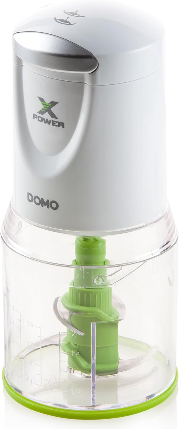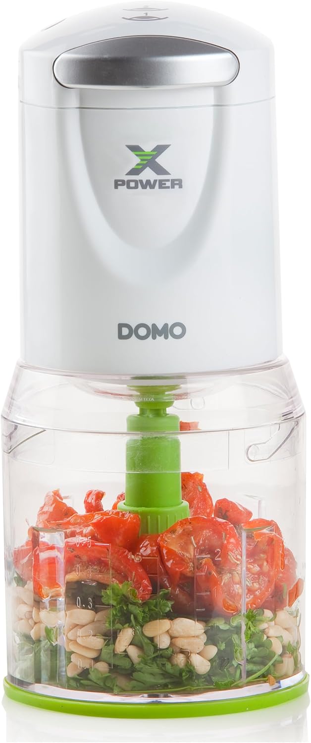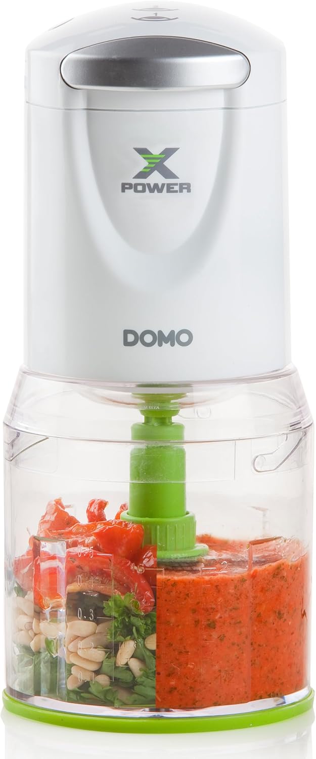 VIERMESSER‑SYSTEM FÜR PRÄZISE ERGEBNISSE – Der DOMO Multizerkleinerer mit Xpower Quad‑Blade hackt effektiv Kräuter, Gemüse, Eis oder Nüsse für feine Saucen oder Pürees KOMPAKT UND LEISTUNGSSTARK – Dieser elektrischer Zerkleinerer mit 400W und 0,5l Behälter ist ideal für die tägliche Küchenarbeit, vom Dip bis zum Smoothie ZWEI GESCHWINDIGKEITSSTUFEN – Die niedrigere Stufe eignet sich zum Hacken, die höhere zum feinen Pürieren – vielseitig einsetzbar für verschiedene Texturen KOMPLETT SPÜLMASCHINENFÄHIG – Alle abnehmbaren Teile dieses elektrischer Multi‑Zerkleinerer sind spülmaschinengeeignet für einfache und schnelle Reinigung SICHERHEIT UND EINFACHE HANDHABUNG – Deckel verriegelt sich automatisch, Klingen stoppen erst nach 15Sekunden – ideal als multifunktionaler Zerkleinerer für die ganze Familie INKLUSIVE REZEPTBOOKLET FÜR INSPIRATION – Die elektrische Multizerkleinerer‑Lieferung enthält ein Kreativbuch, das köstliche Rezeptideen für Dips, Saucen und Desserts liefert | قیمت یورویی : 26.99€