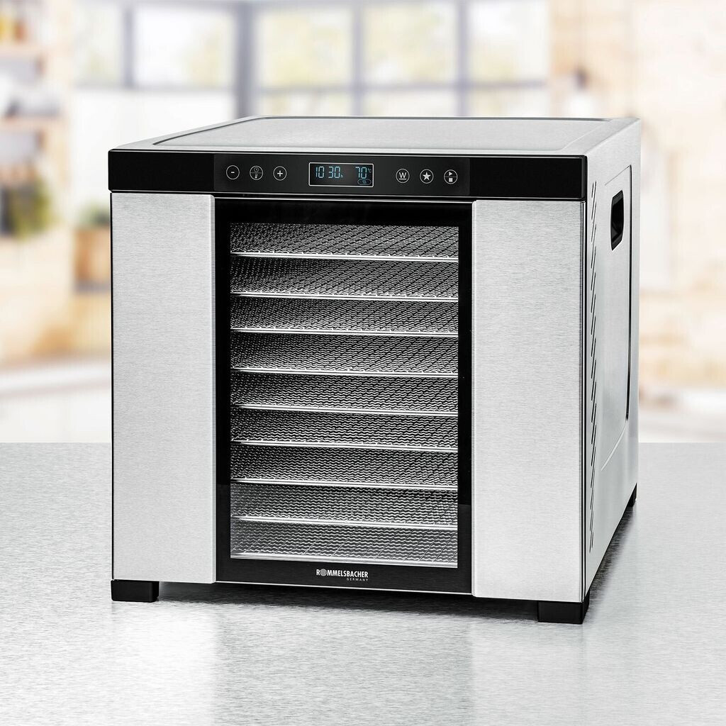 خشککن غذا روملزباخر آلمان مدل DA 1050 با ظرفیت بزرگ و تنظیم دما، مناسب خشککردن میوه، سبزی و مواد پروتئینی است.