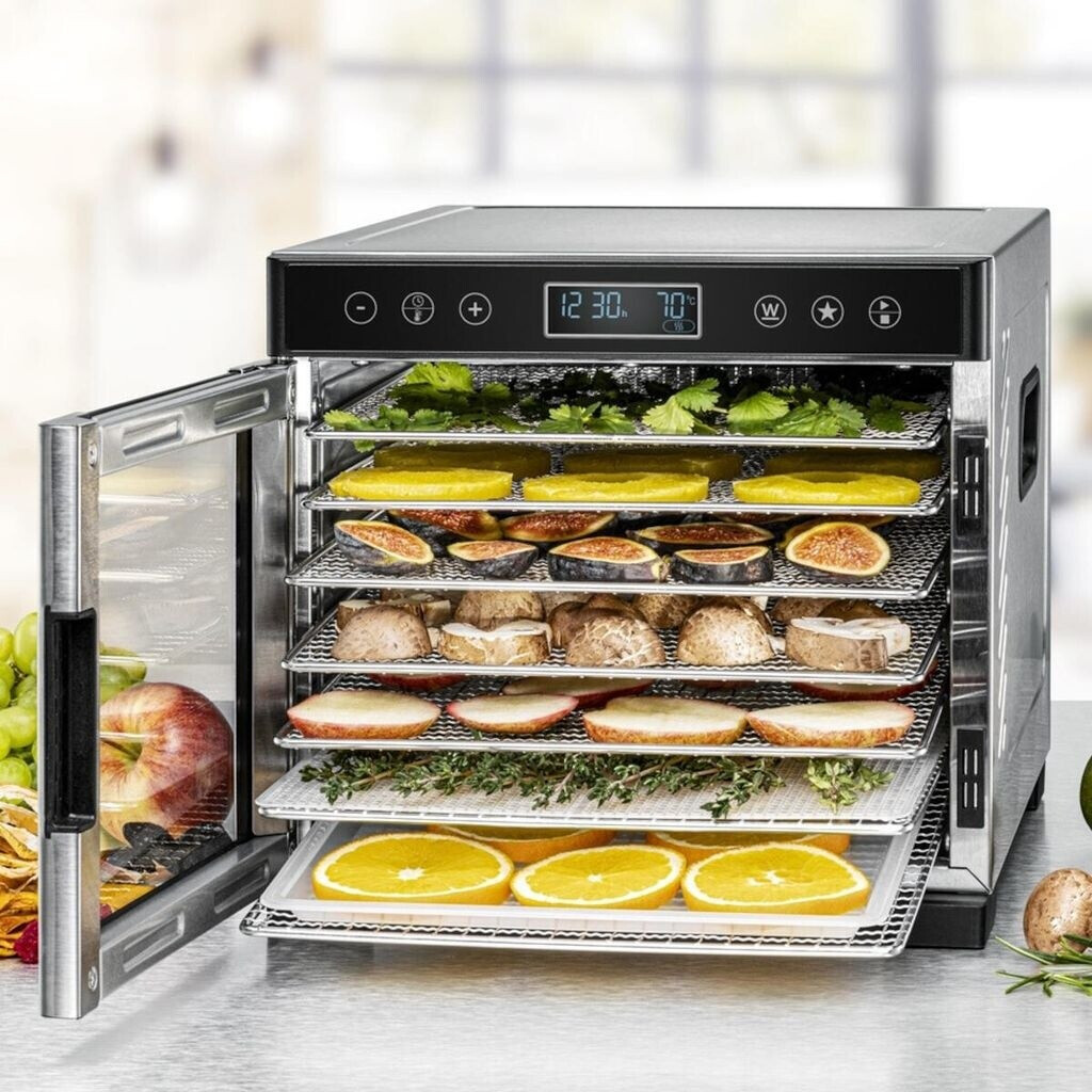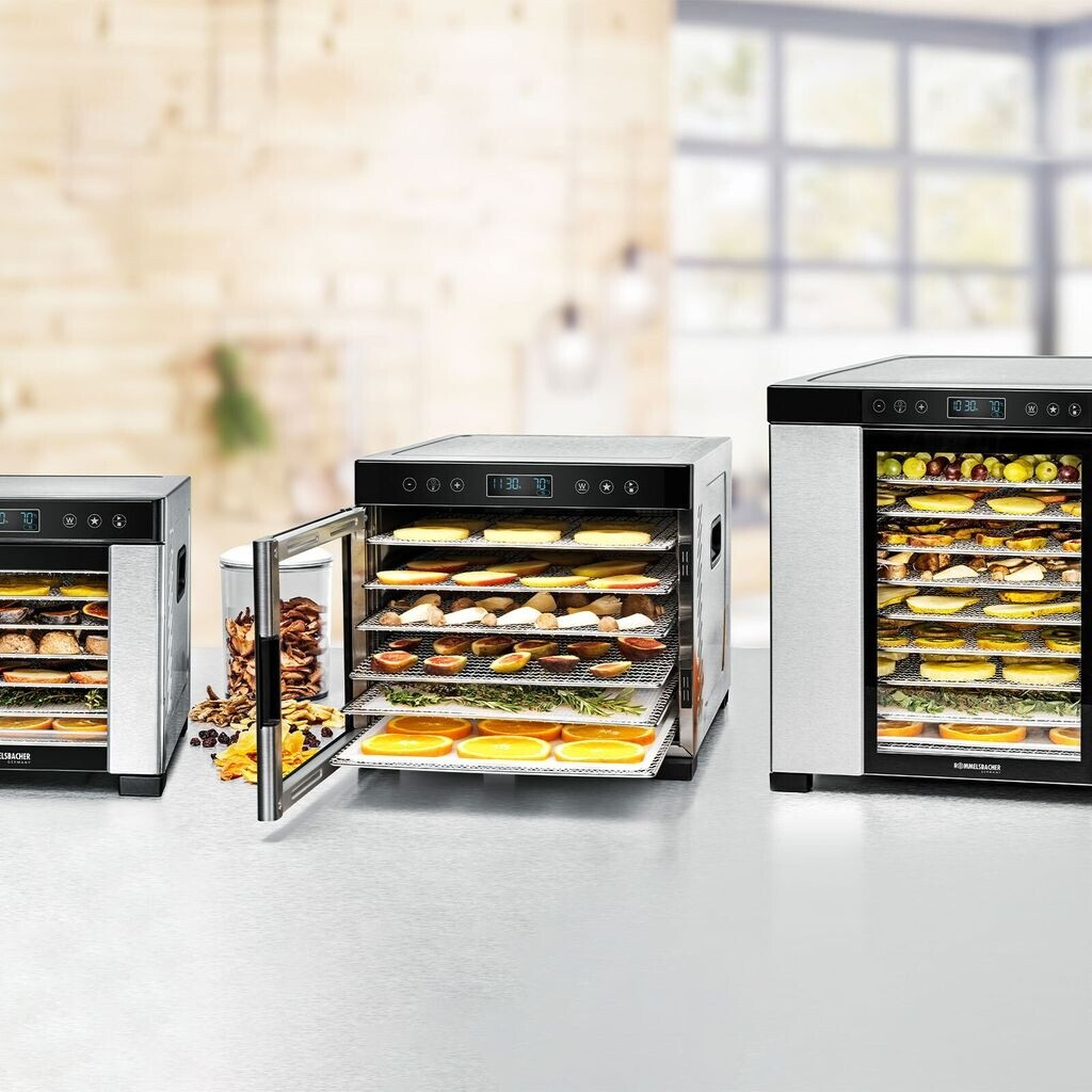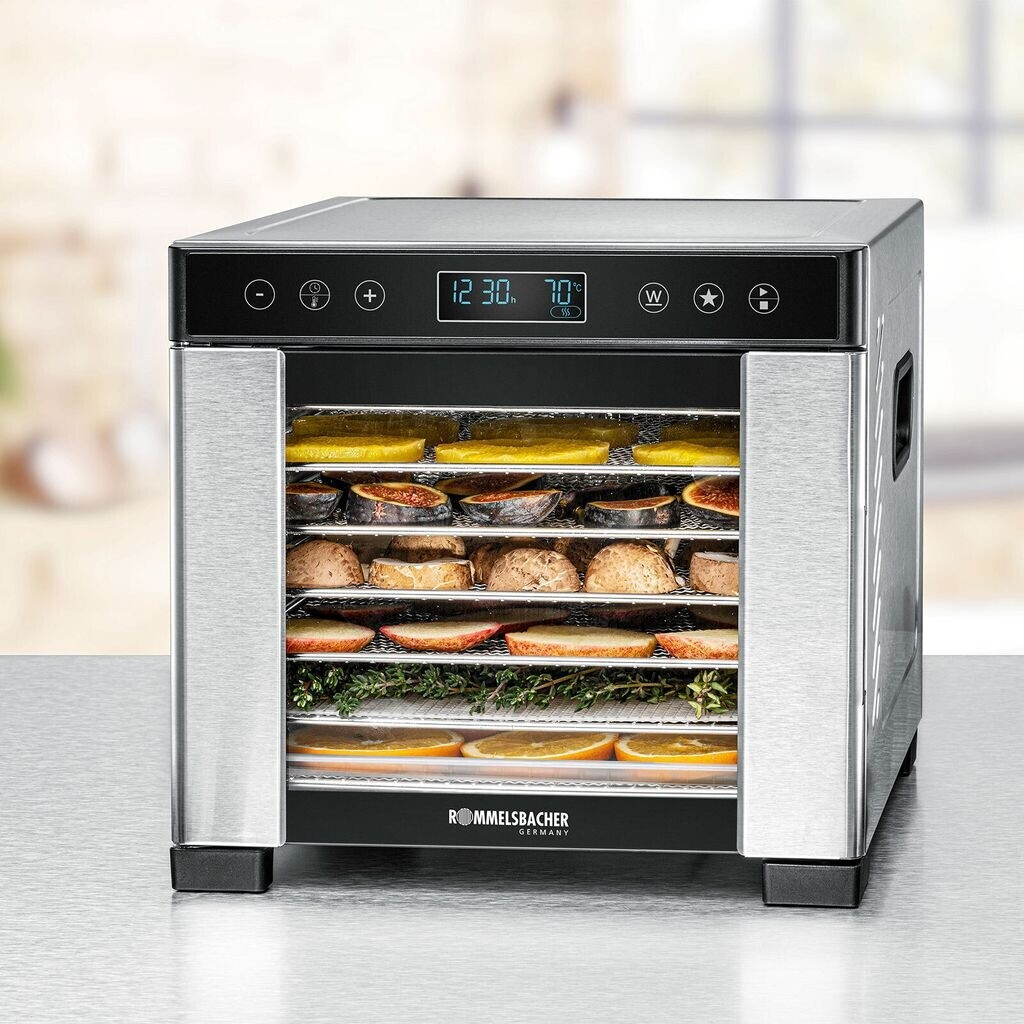 خشککن میوه روملزباخر آلمان با ظرفیت سینیهای متعدد و تنظیم دمای دقیق، امکان تهیه میانوعدههای سالم را میدهد.