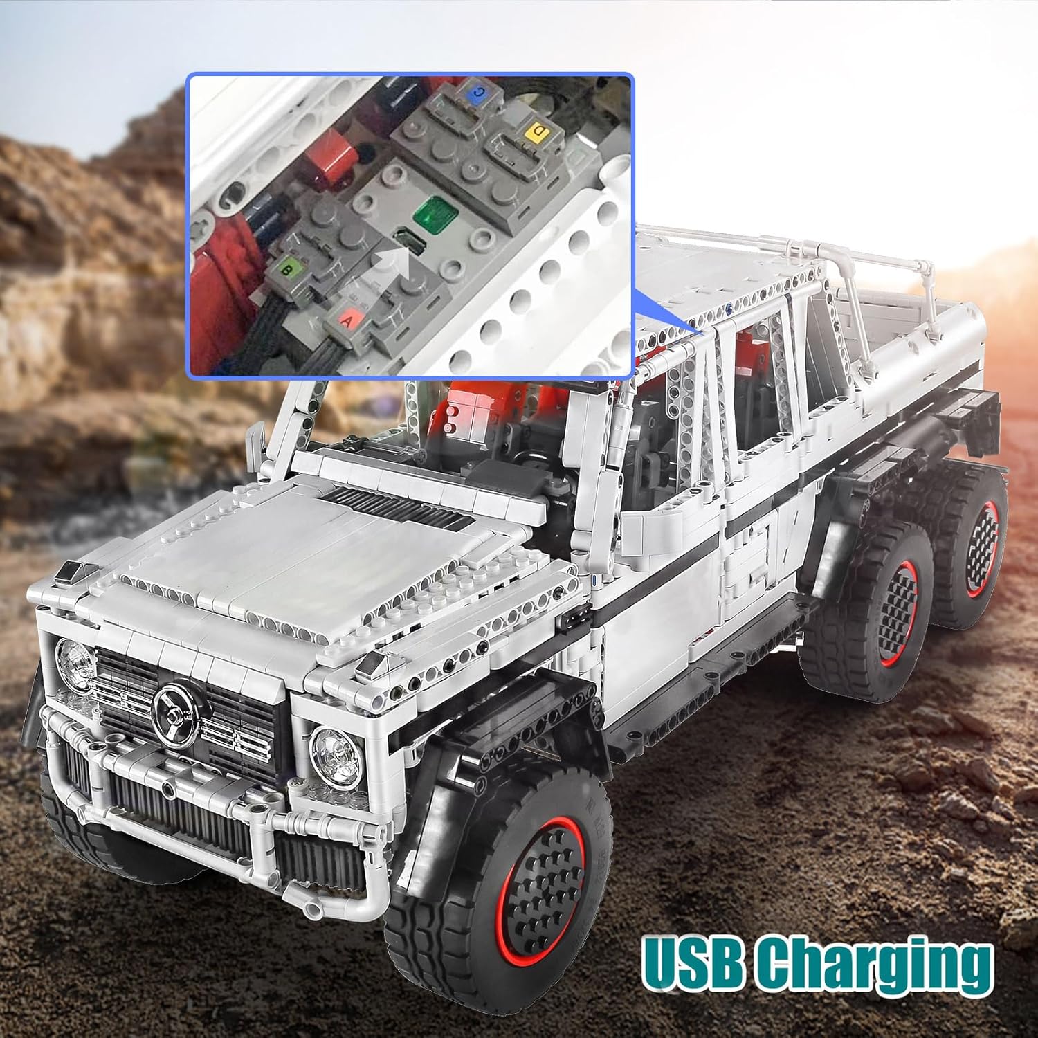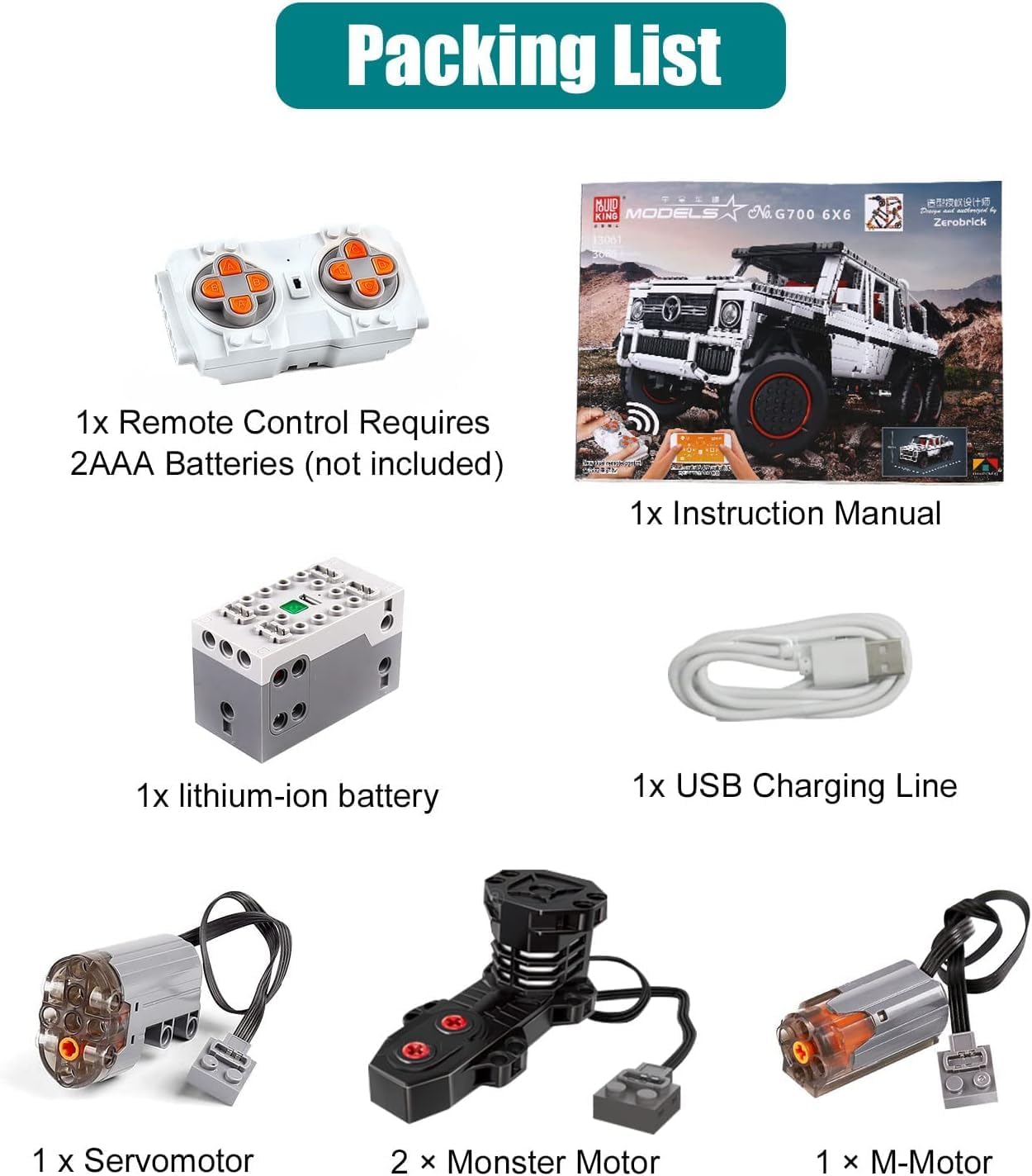 Individuelles Paket - Alle Zubehörteile sind in einer unabhängigen Packtasche verpackt, die für jeden leichter zu verstehen ist. Inzwischen liegt dem Paket eine leicht verständliche Anleitung bei. Es ist für jedermann leicht zu verstehen und zu montieren. Technisches Offroad-Fahrzeug - Das Modell des Bausteins im Maßstab 1: 8, dieser exquisite technische Modellbausatz begeistert mit viel Liebe zum Detail und wurde speziell für Fans von Geländefahrzeugen entwickelt. Technisches 6x6-Geländewagen mit Power-Funktion (2x Monstermotor, 1x M-Motor, 1x Servomotor, 1x Fernbedienung und 1x Lithium-Batteriekasten). Das Geländewagen selbst ist sehr stabil und sehr attraktiv im Aufbau. Programmierbare Funktion - Sie können das Technik Geländewagen per Fernbedienung oder Ihrem Mobiltelefon steuern, Sie müssen nur die App herunterladen und den Bagger klemmbausteine über Bluetooth verbinden. Es unterstützt 2 Fernbedienungsmodi - Fernbedienungsmodus und Programmierfunktion. Jeder Modus ist einfach und leicht zu bedienen. Genießen Sie den Spaß aller Steuerungsmöglichkeiten. USB-betriebenes Design - Dieser Spielzeugbaustein verwendet einen Hochleistungsmotor, der starke Leistung liefern kann, sowie einen 4,07 V / 400 mAh großen wiederaufladbaren Lithium-Ionen-Akku, der die beste Laufzeit bietet. Einfach aufzuladen, können Sie das Spielzeug über den Stecker, die tragbare Powerbank, den Laptop usw. aufladen. Und die Fernbedienung benötigt 2 AAA-Batterien (nicht im Lieferumfang enthalten). Schönes Geschenk für Kinder - Dieser Technik Offroad Bausteine mit bunter Geschenkverpackung ist ein schönes Geschenk für Kinder zum Geburtstag/Kindertag/Weihnachten/Neujahr. Alle Produkte meiner Firma wurden vor dem Versand streng geprüft. Bei Problemen mit Ihrem Kauf können Sie uns gerne kontaktieren! | قیمت یورویی : 159.99€