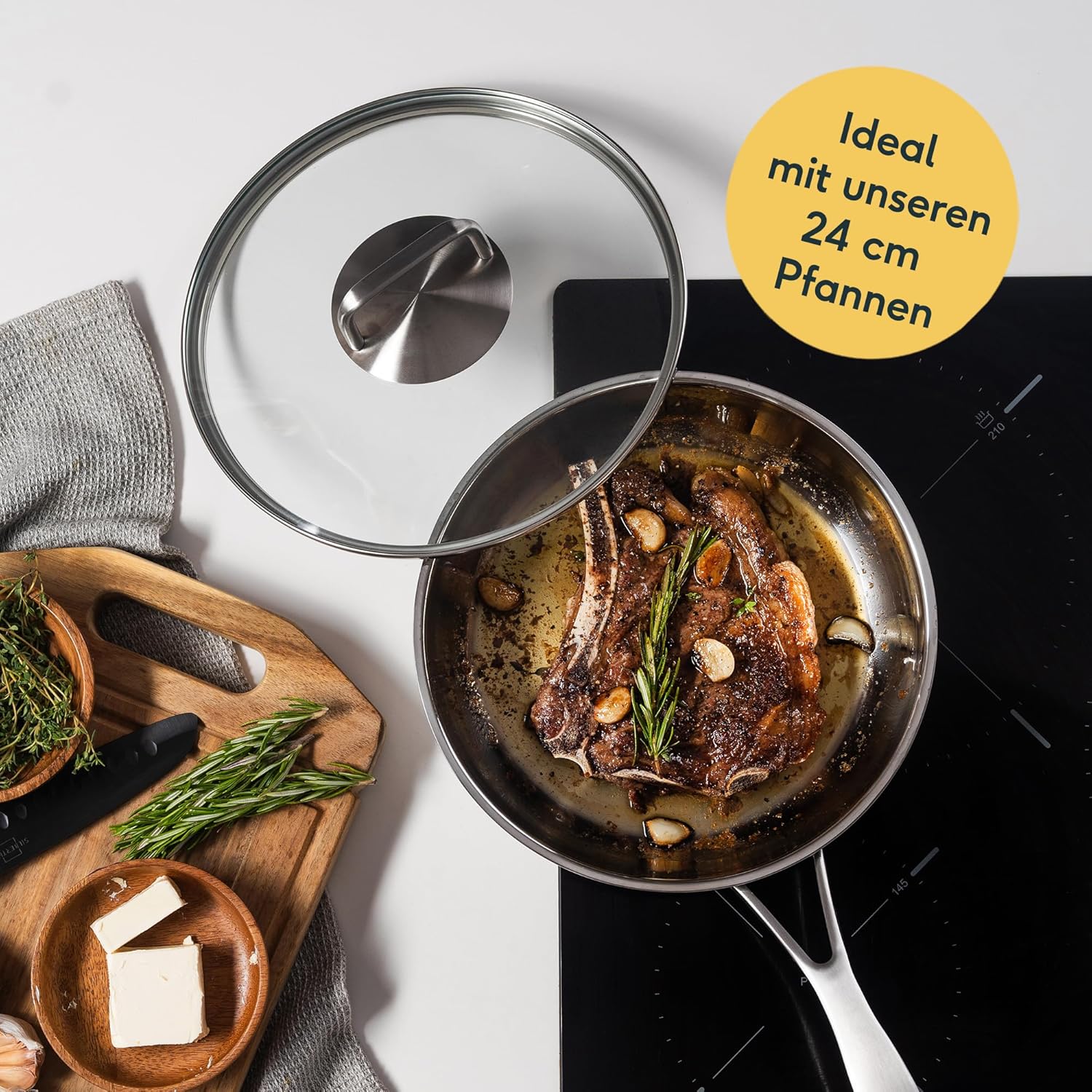 SILBERTHAL Pfannendeckel 24cm - Universell einsetzbar - Glas, Edelstahl - Deckel für Bratpfanne, Servierpfanne oder Wok 24 cm | قیمت یورویی 22.95€