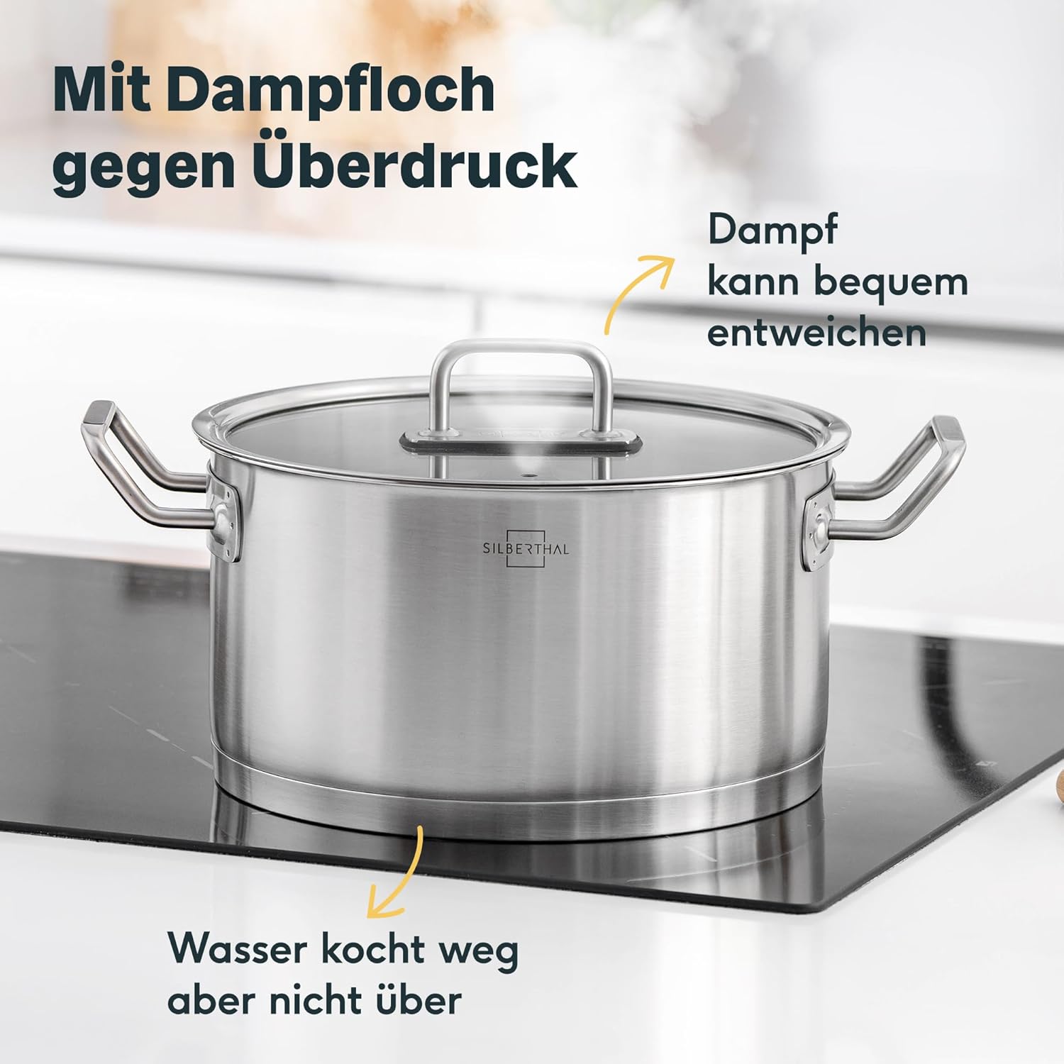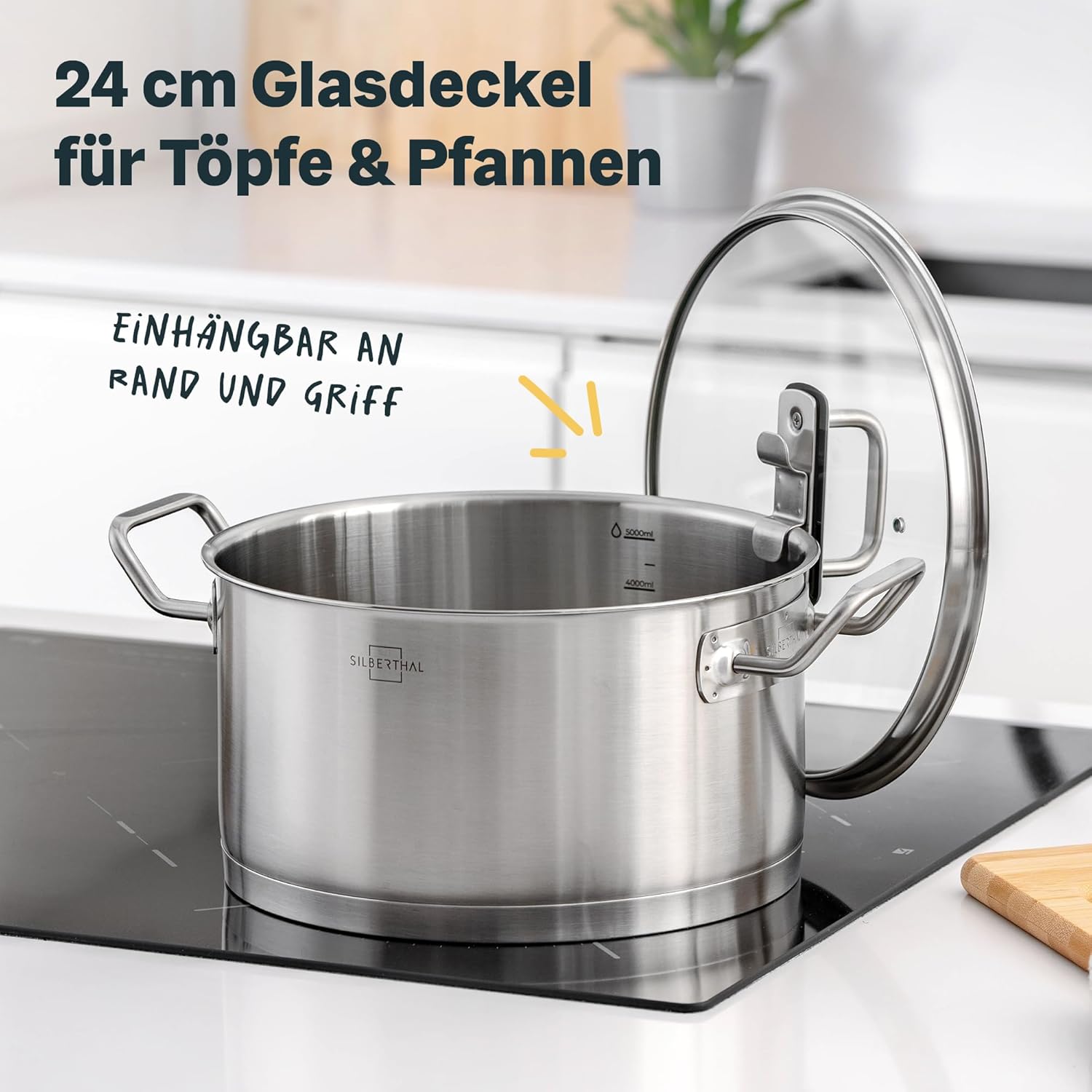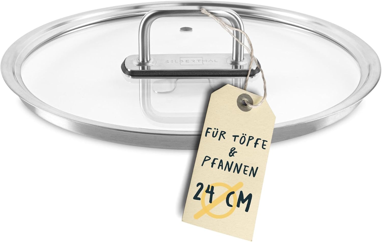 SILBERTHAL Topfdeckel 24 cm Glas - Mit Dampfloch und Edelstahl Griff - Universaldeckel | قیمت یورویی 22.95€