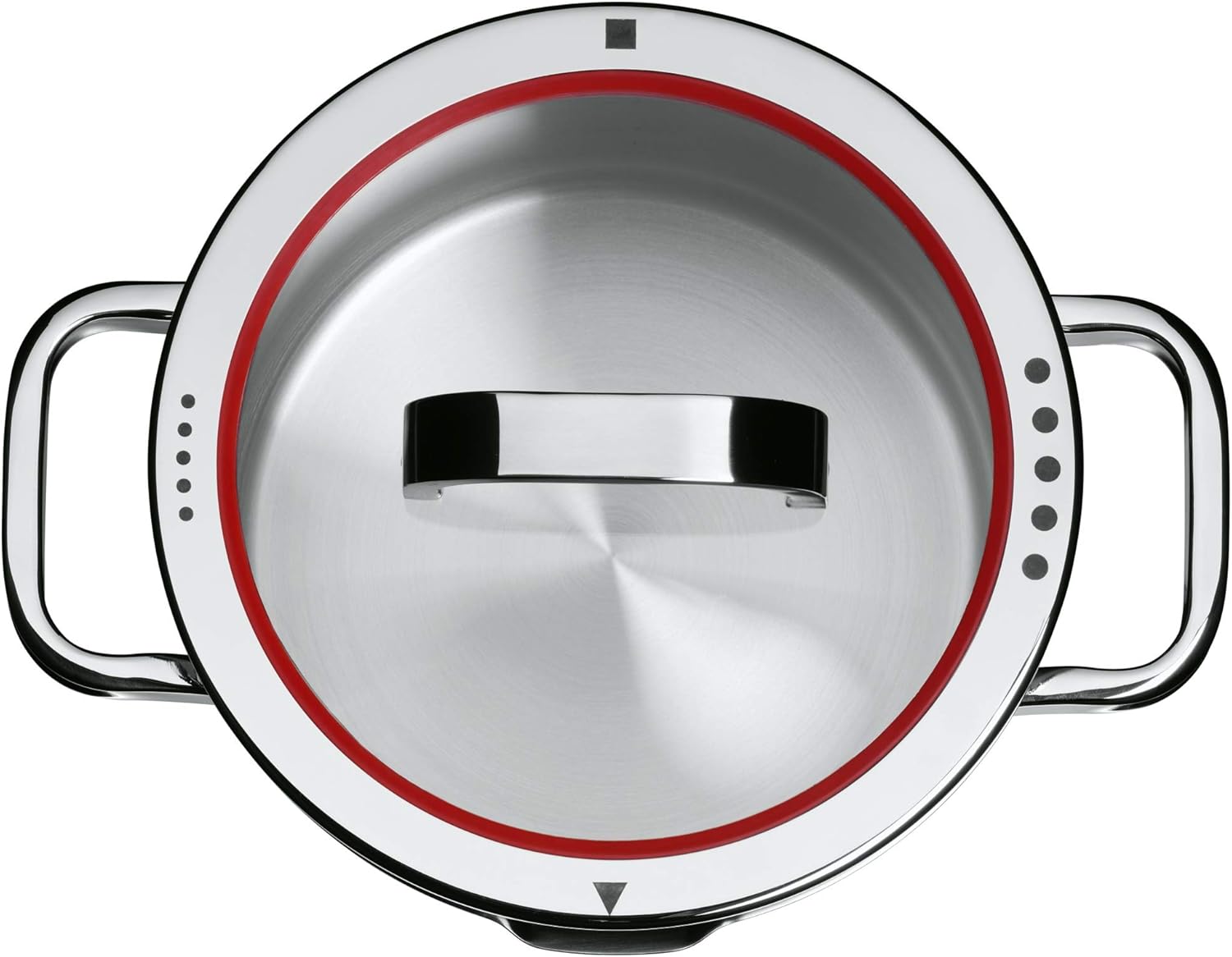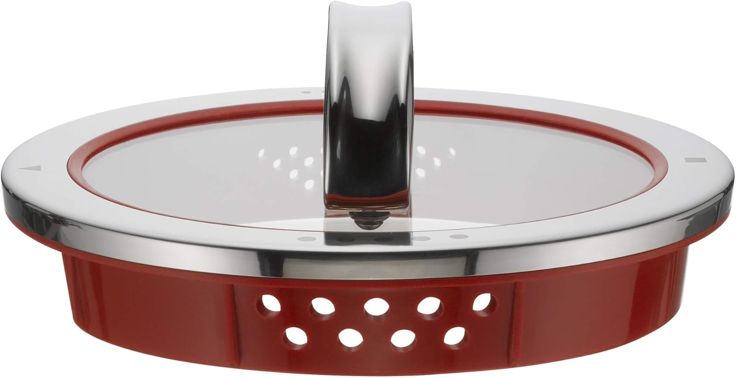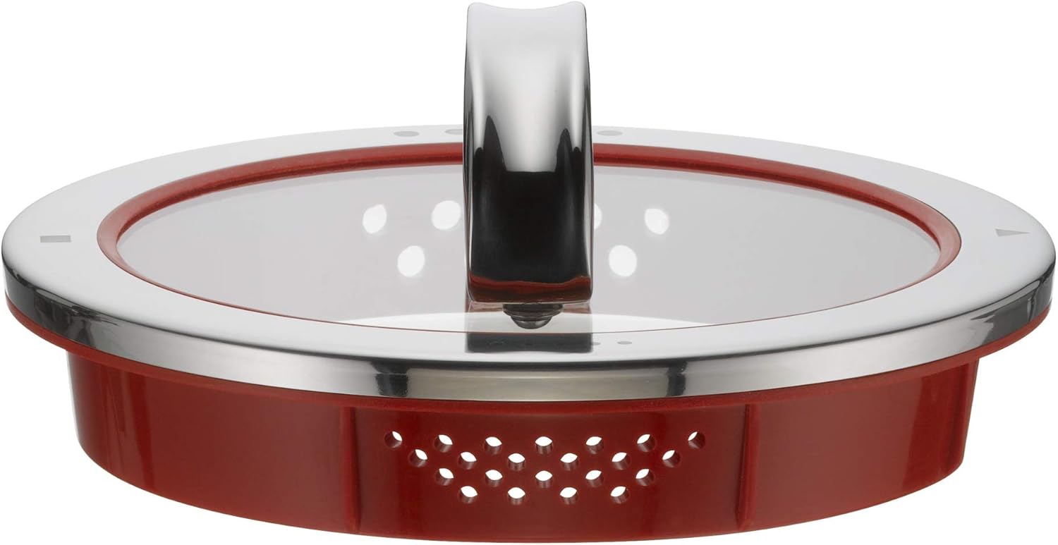 WMF Function 4 Topfdeckel 16 cm, Glasdeckel mit 4 Abgießfunktionen, Glas, Silikon, Cromargan Edelstahl poliert, rot Function – Glasdeckel – Zubehör 16 cm | قیمت یورویی 32.9€