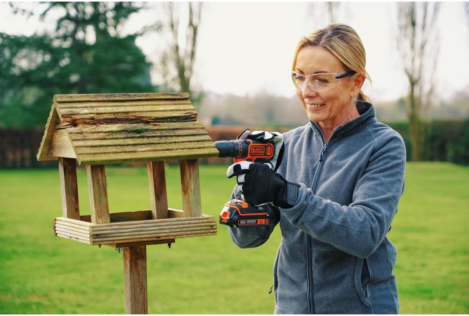 Black+Decker Akku-Bohrschrauber (18V, inkl. Li-Ion Schiebe-Akku, 1 Doppelbit, 400 mA Ladegerät im Koffer, LED-Arbeitsleuchte, Planetengetriebe, Softgriff) BDCDC18K لینک آمازون : https://www.amazon.de/dp/B01CNOJ9R0?th=1&psc=1 قدرتمند و بادوام: به لطف موتور قوی و چرخ دنده سیاره ای و همچنین باتری لیتیوم یونی با دوام طولانی کاربرد: قدرت و سرعت مناسب برای حفاری در چوب و فلز و همچنین برای تمام کاربردهای پیچ گوشتی شکل ارگونومیک: کار بدون خستگی را تضمین می کند، به راحتی در دست قرار می گیرد، با گرفتن نرم و سطوح لاستیکی کاربر پسند: چراغ کاری LED کار در شرایط دید ضعیف را امکان پذیر می کند محدوده تحویل: 1 عدد دریل بی سیم، 1 عدد باتری لیتیوم یونی Slidepack، 1 عدد دو بیت، 1 عدد شارژر، 1 عدد کیس