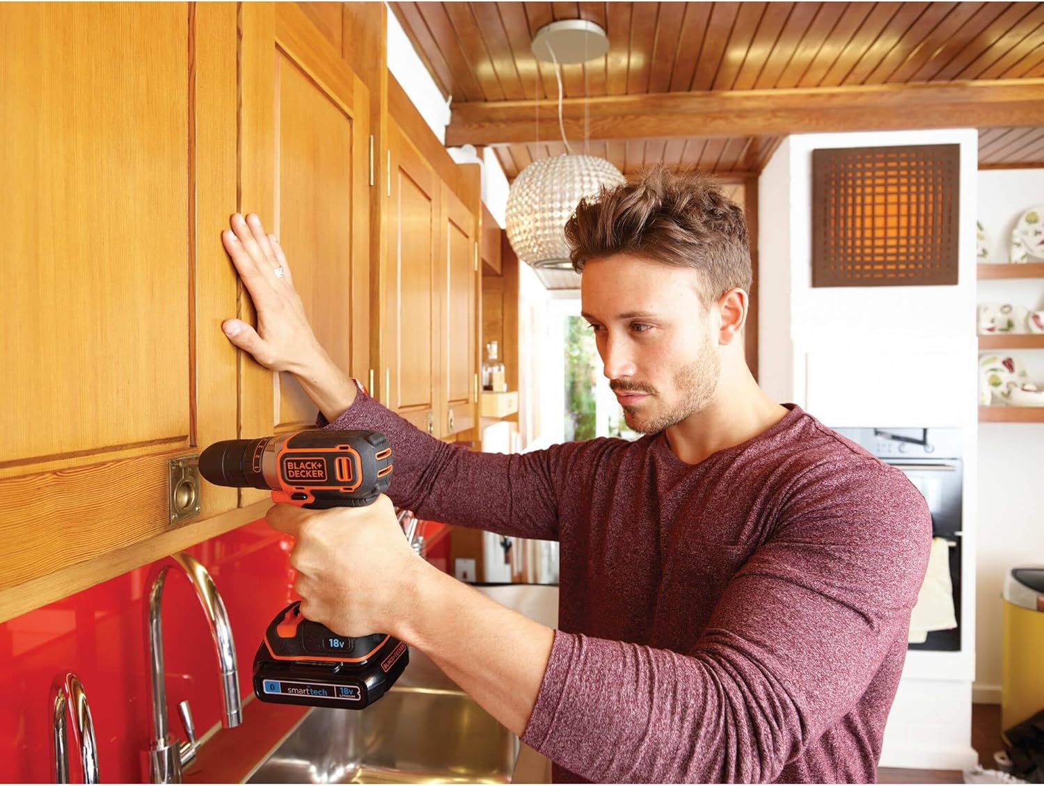 Black+Decker Akku-Bohrschrauber (18V, inkl. Li-Ion Schiebe-Akku, 1 Doppelbit, 400 mA Ladegerät im Koffer, LED-Arbeitsleuchte, Planetengetriebe, Softgriff) BDCDC18K | قیمت یورویی 79.23€