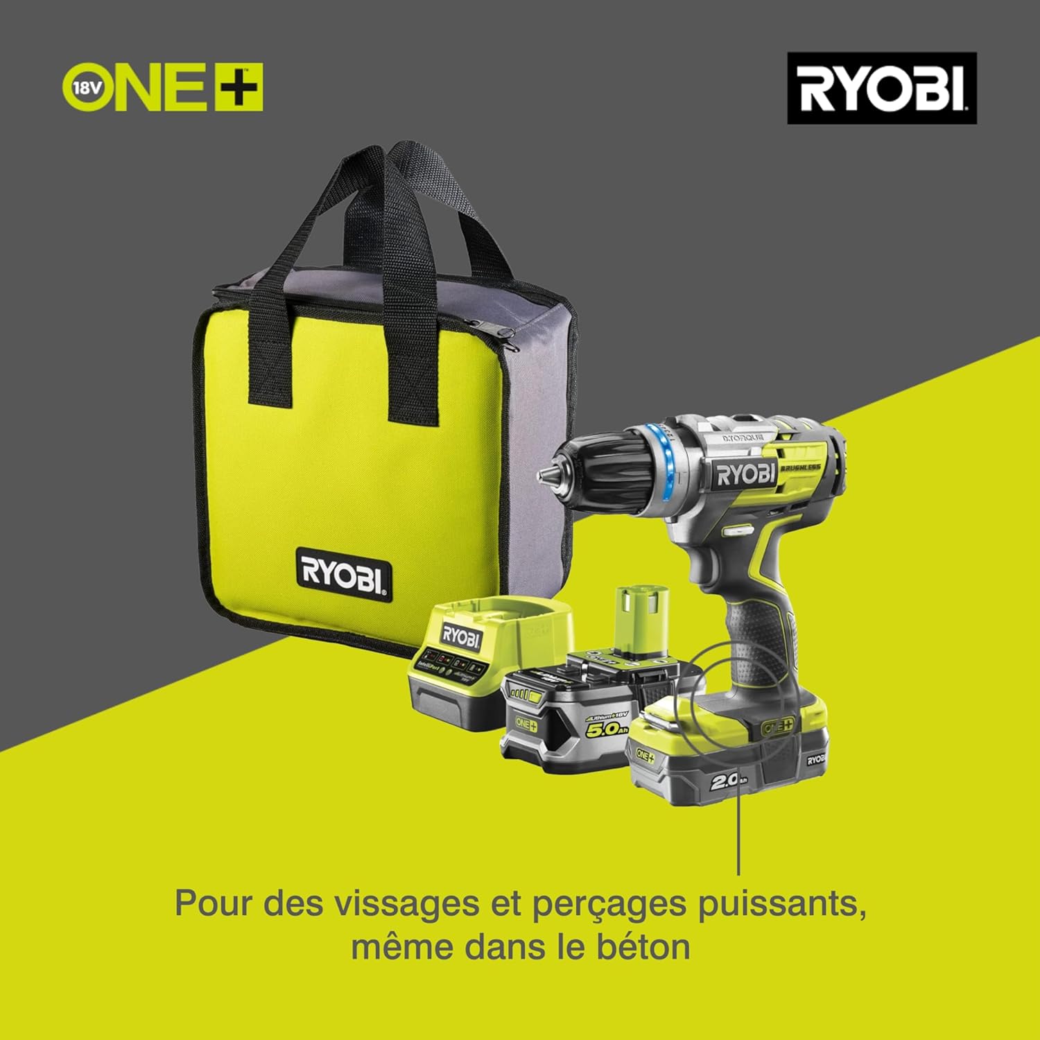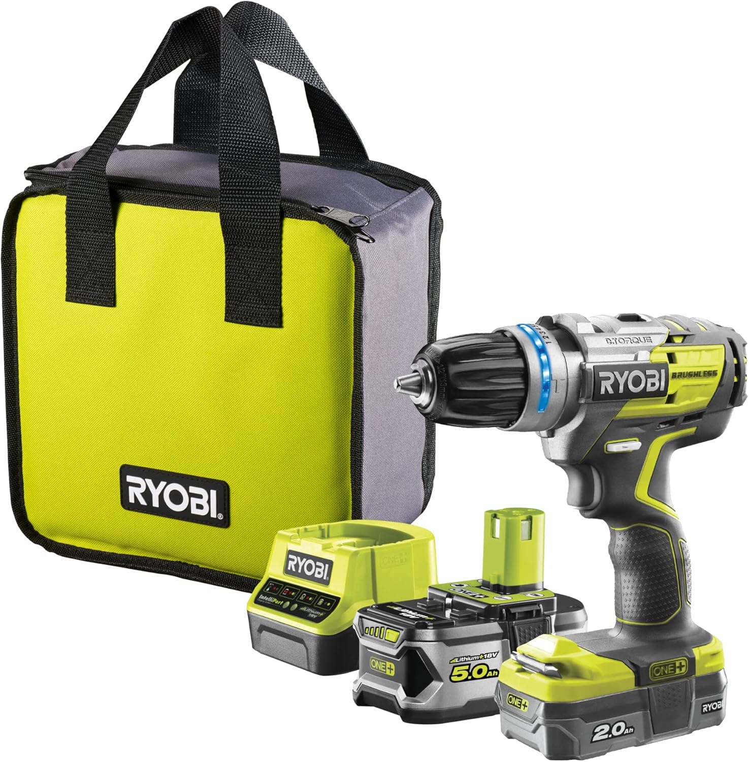 Teil des 18 V ONE+ Akku-Systems von RYOBI; Ein Akku für über 200+ Elektrowerkzeuge und Gartengeräte Bürstenloser Motor mit elektronischer Steuerung, für bis zu 40 Prozent mehr Laufzeit pro Akku-Ladung Elektronische Leistungskontrolle liefert bis zu 20 Prozent mehr Leistung als ein herkömmlicher Elektro-Motor mit Kohlebürsten 10x längere Lebensdauer durch optimierte Motorkühlung, 13 mm Schnellspannbohrfutter mit automatischer Spindelarretierung 10 Elektronische Drehmomenteinstellung e-torque mit Abschaltfunktion liefert stets die passende Drehzahl- und Drehmomentstufe 3 Gang Metall-Planetengetriebe, ideal für Bohr- und Befestigungsarbeiten, Gasgebeschalter, Rechts- / Linkslauf und Motorbremse Handgriff im neuen ergonomischen Design mit GripZone+– gummierte Anti-Vibrations-Griffflächen für komfortablen Halt Kompakter und handlicher 18 V Akku-Schlagbohrschrauber mit nur 201 mm Länge, LED Beleuchtung des Arbeitsbereiches 3 JAHRE GARANTIE - Alle Geräte sind auf langlebigkeit ausgelegt; Das gilt auch für die Garantie; Registriere dafür das erworbene Produkt auf unserer Webseite Lieferumfang: Brushless Akku-Schlagbohrschrauber R18PDBL-252S, inkl; 5,0 & 2,0 Ah Akku & Ladegerät in Werkzeugtasche | قیمت یورویی : 277€