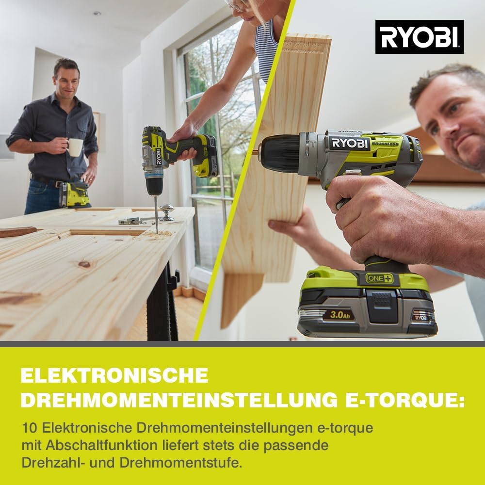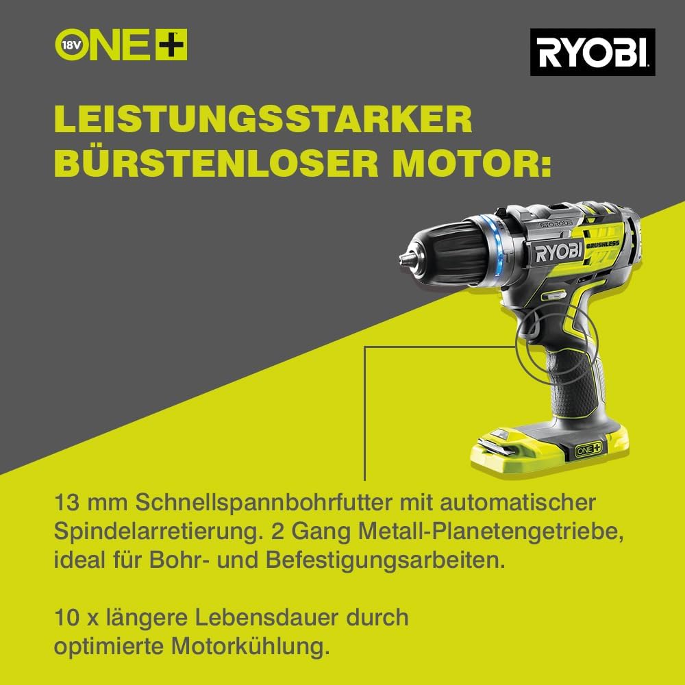 RYOBI 18 V ONE+ Brushless Akku-Schlagbohrschrauber R18PDBL-0 (Drehmoment 60 Nm, 10 Einstellungen, Bohrfutter 13 mm, Max. Bohrdurchmesser in Holz|Mauerwerk|Stahl 50|13|13mm, ohne Akku und Ladegerät) | قیمت یورویی 129.99€