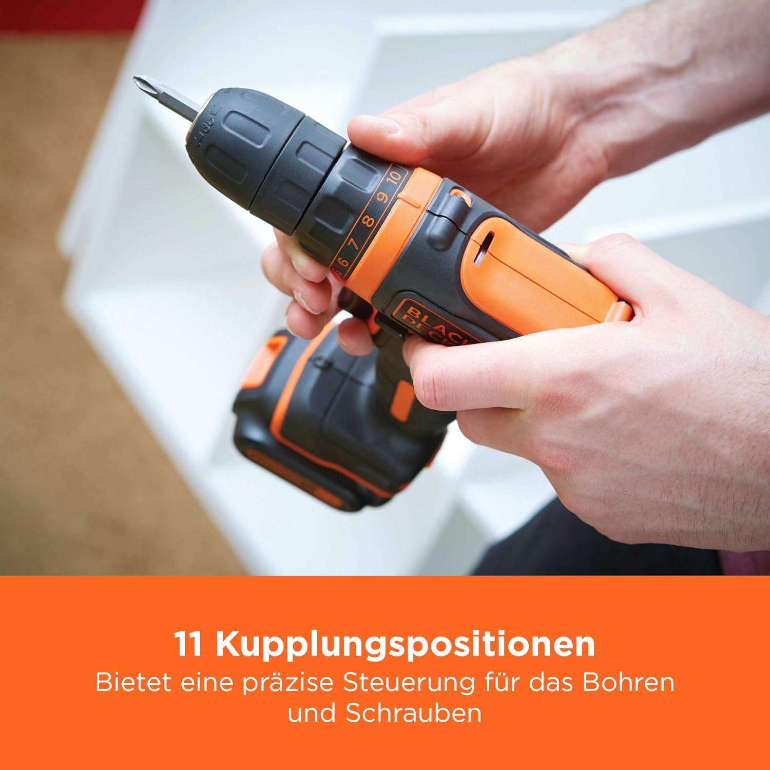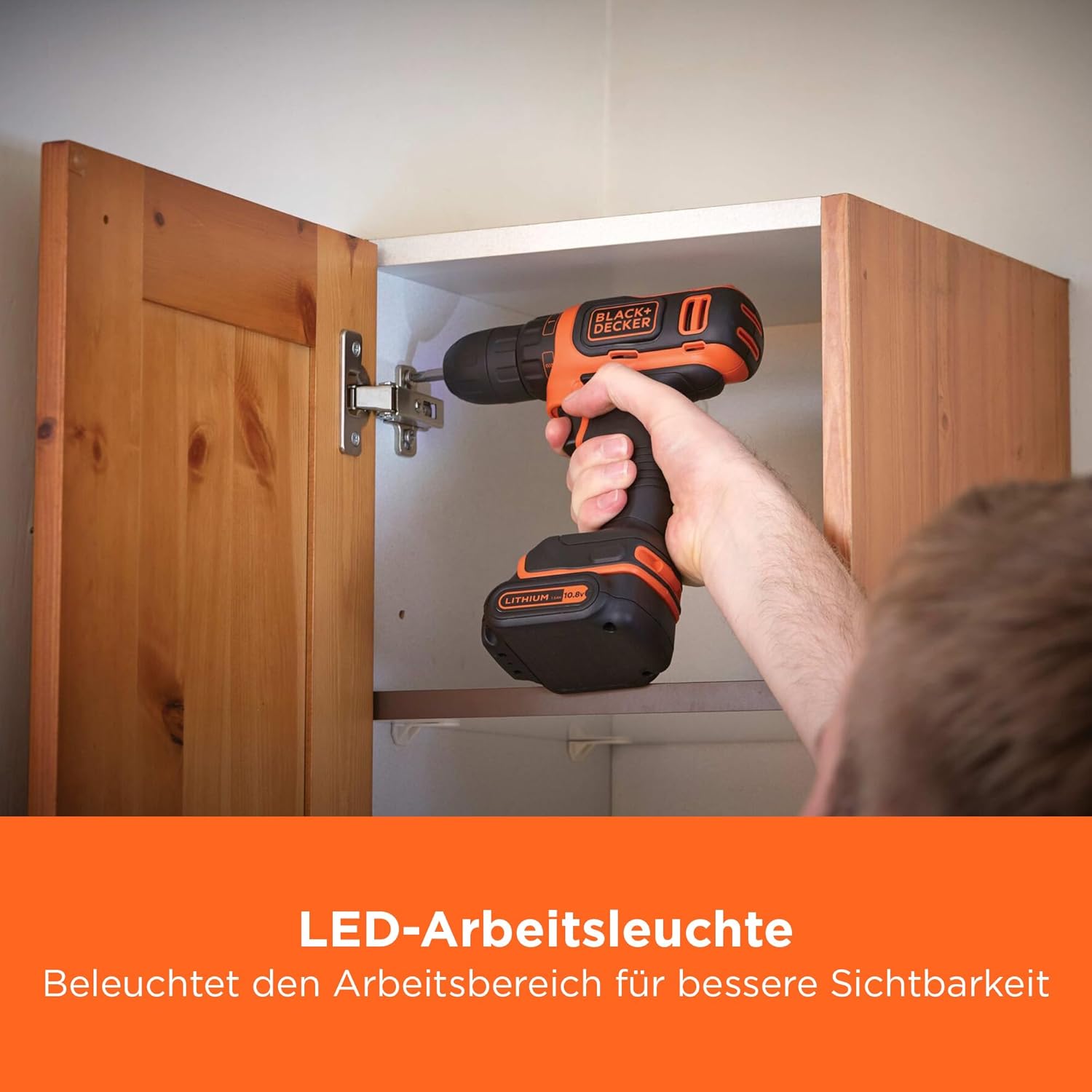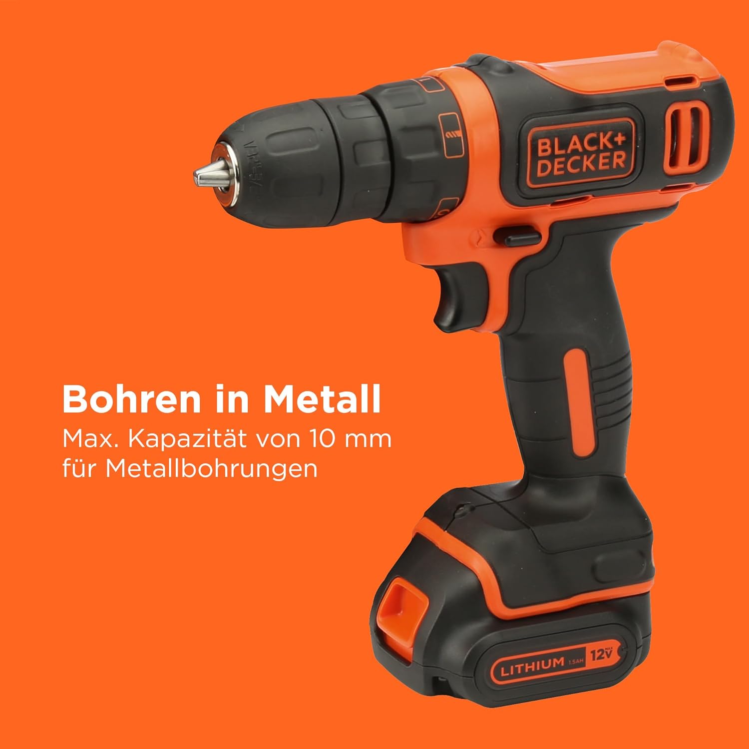 BLACK+DECKER Li-Ion Ultra-Kompakt-Bohrer (Kleiner Akkuschrauber mit ergonomischem Softgriff und LED-Arbeitslicht für Bohr- und Schraubanwendungen, 1 x Akku-Bohrschrauber Li-Ion 10.8 V) BDCDD12-QW | قیمت یورویی 80.78€