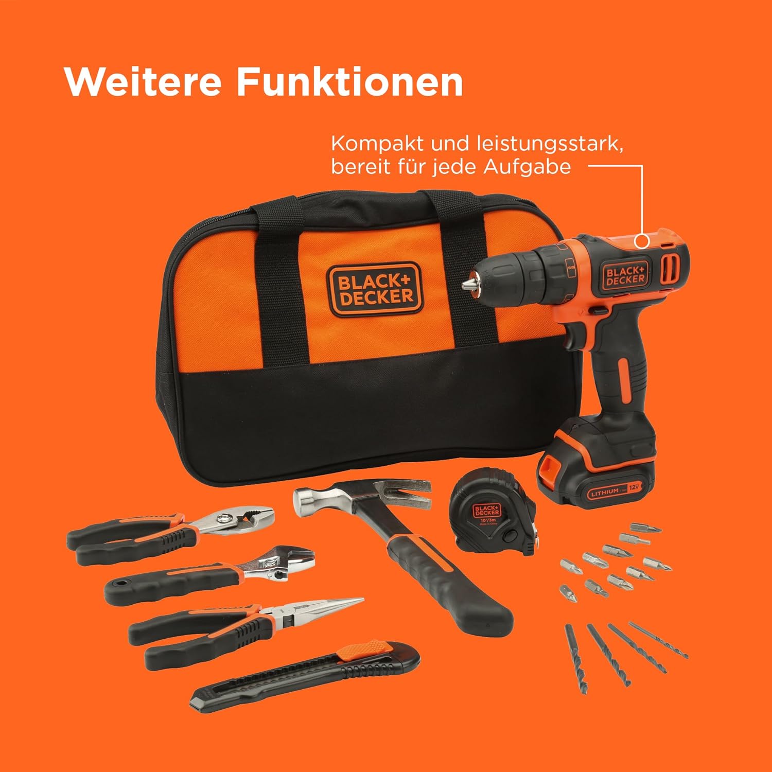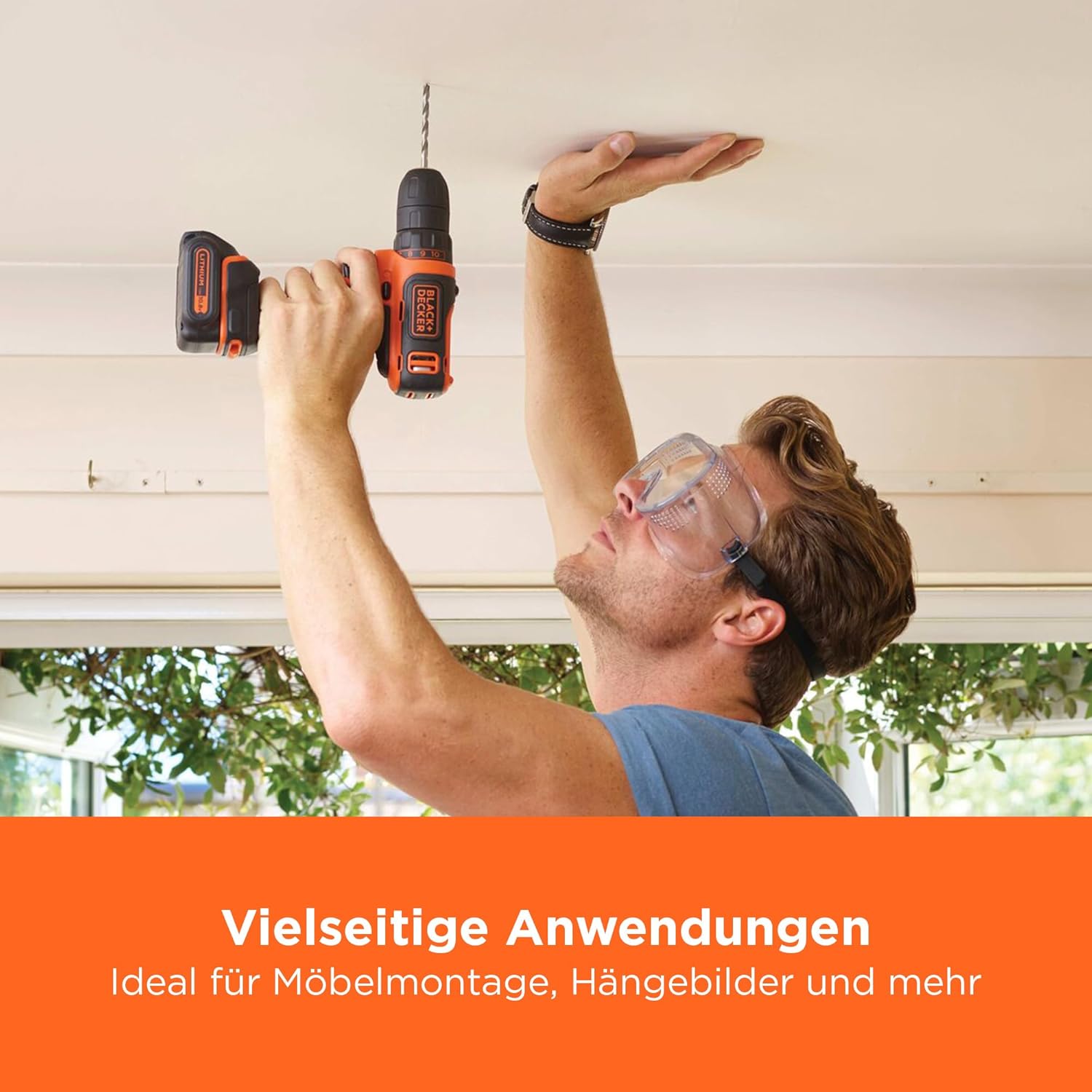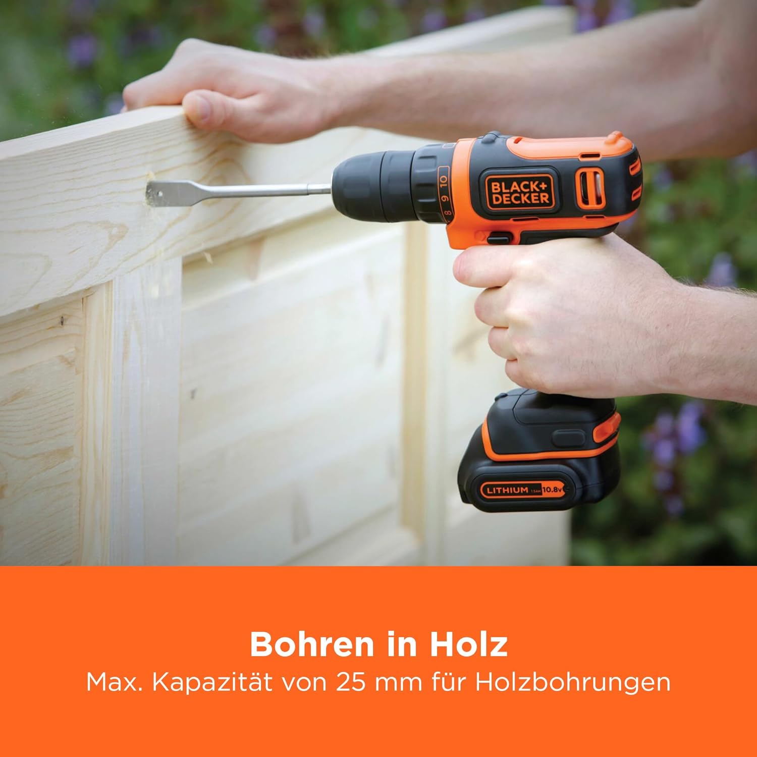 BLACK+DECKER Li-Ion Ultra-Kompakt-Bohrer (Kleiner Akkuschrauber mit ergonomischem Softgriff und LED-Arbeitslicht für Bohr- und Schraubanwendungen, 1 x Akku-Bohrschrauber Li-Ion 10.8 V) BDCDD12-QW | قیمت یورویی 80.78€