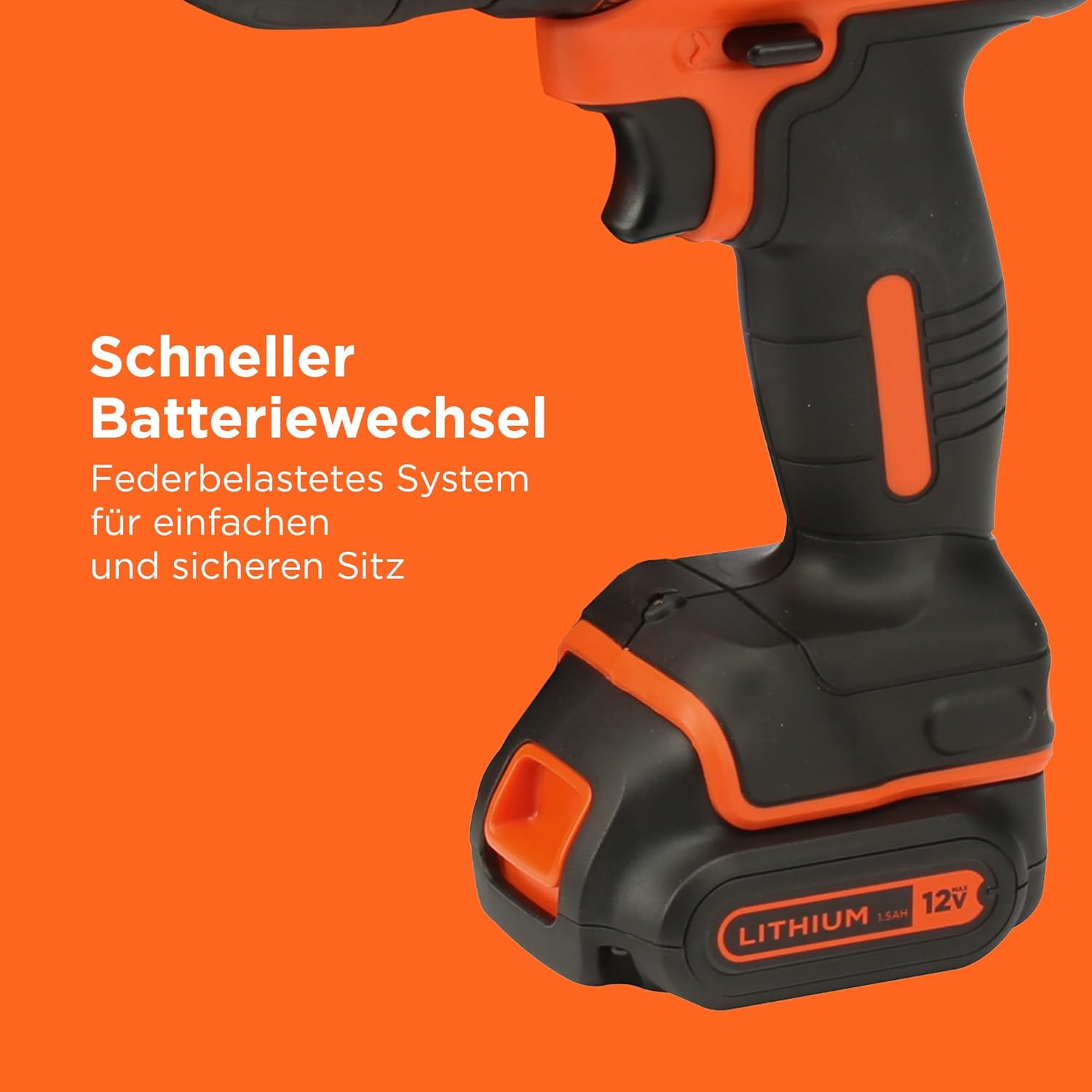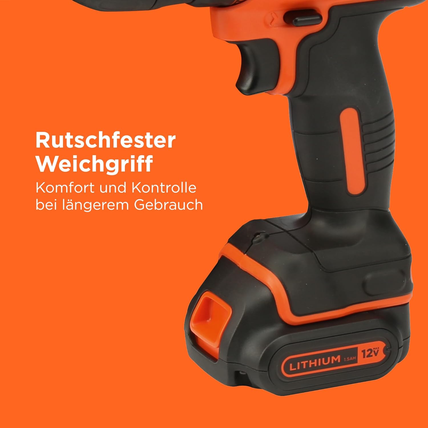 SCHNURLOSER KOMFORT: Die Freiheit, ohne Kabel zu bohren und zu fahren. LEICHT UND KOMPAKT: Ideal für enge Räume und schwer zugängliche Bereiche. PRÄZISE STEUERUNG: 11 Kupplungspositionen zum Bohren in Holz, Metall, Kunststoff und alle Schraubaufgaben. LED-ARBEITSLEUCHTE: Integrierte LED beleuchtet den Arbeitsbereich und verbessert die Sichtbarkeit. LITHIUM-IONEN-AKKU: Hält 80 % seiner Ladung über 90 Tage und ist jederzeit einsatzbereit. VARIABLE GESCHWINDIGKEITSREGELUNG: Ultimative Fingerspitzensteuerung für alle Bohr- und Schraubanwendungen. SCHNELLER BATTERIEWECHSEL: Das federbelastete Batteriesystem sorgt für einen einfachen Austausch und einen sicheren Sitz. WEICHGRIFF: Anti-Rutsch-Design für Komfort und Kontrolle bei längerem Gebrauch. IDEAL FÜR DIY-Aufgaben: Perfekt für den Zusammenbau von Möbeln, hängenden Regalen und allgemeinen Hausaufgaben. LIEFERUMFANG: 10,8 V 1,5-Ah-Akku und Ladegerät zur sofortigen Verwendung. | قیمت یورویی : 80.78€