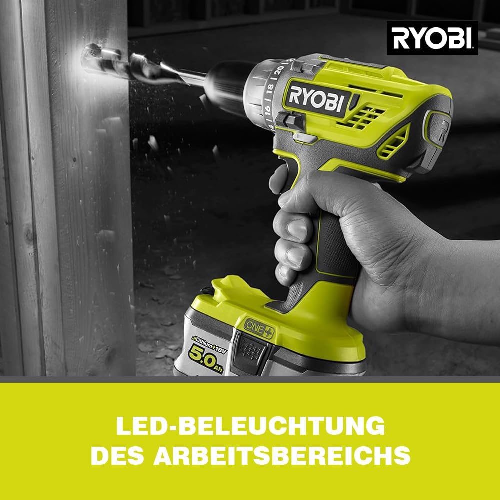 RYOBI 18 V ONE+ Akku-Bohrschrauber R18DD3-215S, 2-Gang-Getriebe, 13 mm Schnellspannbohrfutter, inkl. 2 x 1,5 Ah Akku und Ladegerät لینک آمازون : https://www.amazon.de/dp/B077T8MPB2?th=1&psc=1 بخشی از سیستم Ryobi 18V ONE + GripZone - سطح دستگیره ضد لرزش لاستیکی دریل 2 سرعته با چرخش راست به چپ چاک مته بدون کلید با قفل خودکار دوک روشنایی LED محل کار