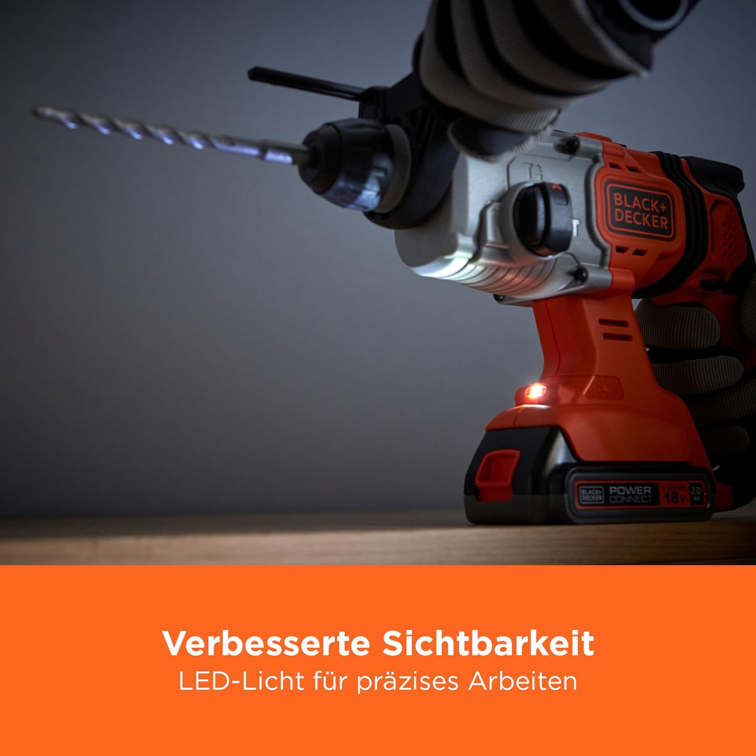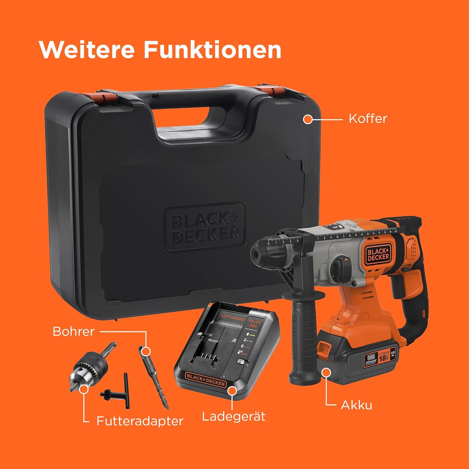 BLACK+DECKER 18 V SDS-Plus Akku-Bohrhammer, 4,0 Ah Akku, 2 A Ladegerät, Kit-Box, verstellbarer Griff, LED-Licht, BCD900M1K-QW | قیمت یورویی 184.37€