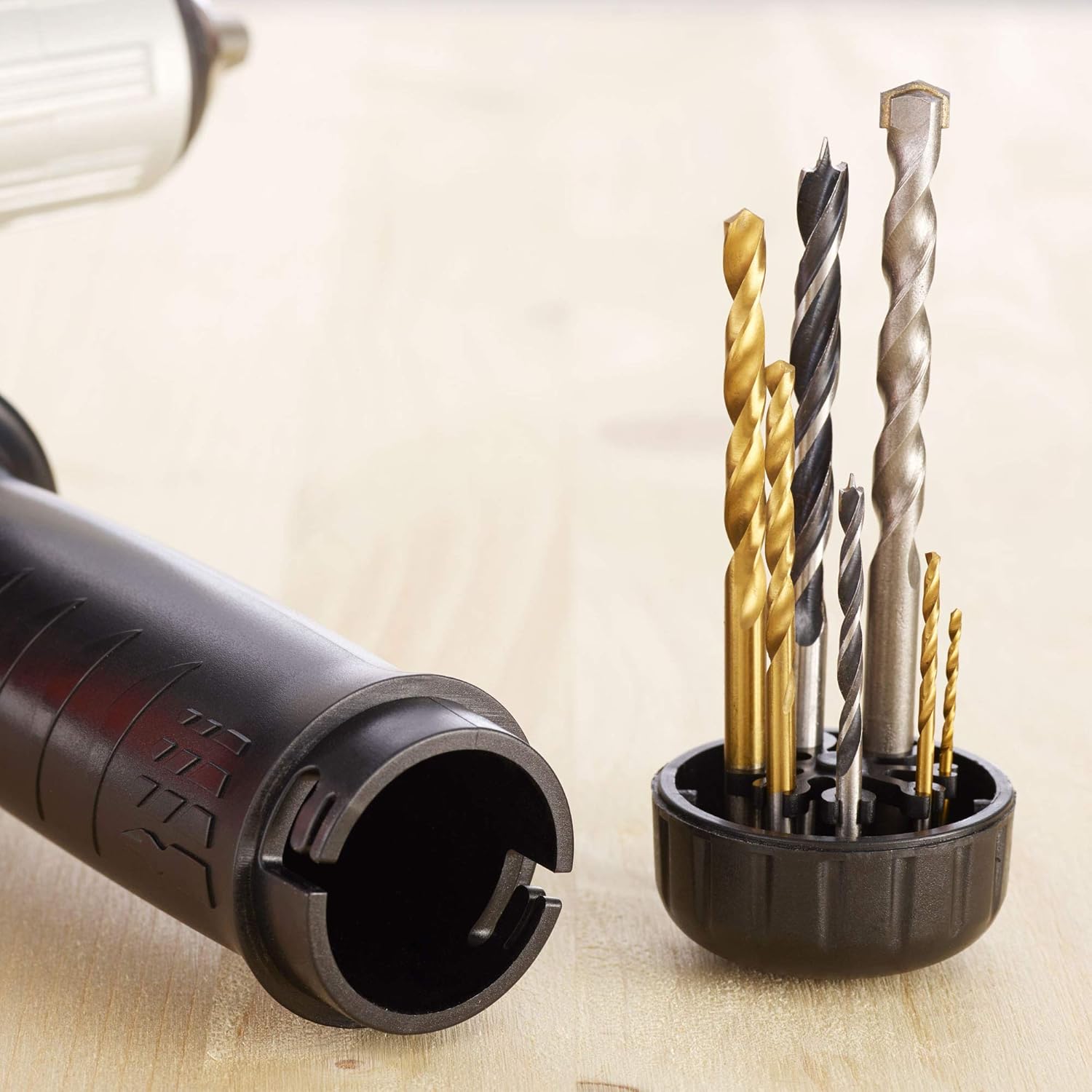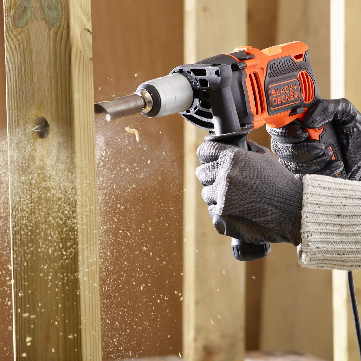 LEISTUNGSSTARKER 850-W-Motor: Bietet Hochleistungsbohrungen für Holz, Metall, Mauerwerk und Kunststoff VARIABLE DREHZAHLREGELUNG: Ermöglicht präzises Bohren und Schrauben mit bis zu 3.100 U/MIN SCHLAGFESTE WIRKUNG: Liefert 54.400 BPM für effizientes Bohren in zähe Materialien 13-MM-SCHNELLSPANNBOHRFUTTER: Ermöglicht schnellen und einfachen Bohrerwechsel für maximalen Komfort ERGONOMISCHES DESIGN: Seitlicher Griff verbessert Griffigkeit und Kontrolle für bequemen, verlängerten Gebrauch EINSCHALTARRETIERUNG: Reduziert Ermüdung bei längeren Bohrarbeiten VIELSEITIGES BOHREN: Geeignet für Heimwerkerprojekte und Heimwerkerarbeiten in verschiedenen Materialien REVERSIBLE FUNKTION: Verbessert die Steuerung für Schraubanwendungen AUFBEWAHRUNGSLÖSUNG: Wird mit einer robusten Kit-Box geliefert, die Ihren Bohrer und Ihr Zubehör sicher hält und alles organisiert und transportbereit hält. LIEFERUMFANG: 850-W-Bohrhammer, Seitengriff und 32 Bohrer in einem robusten Gehäuse | قیمت یورویی : 91.15€