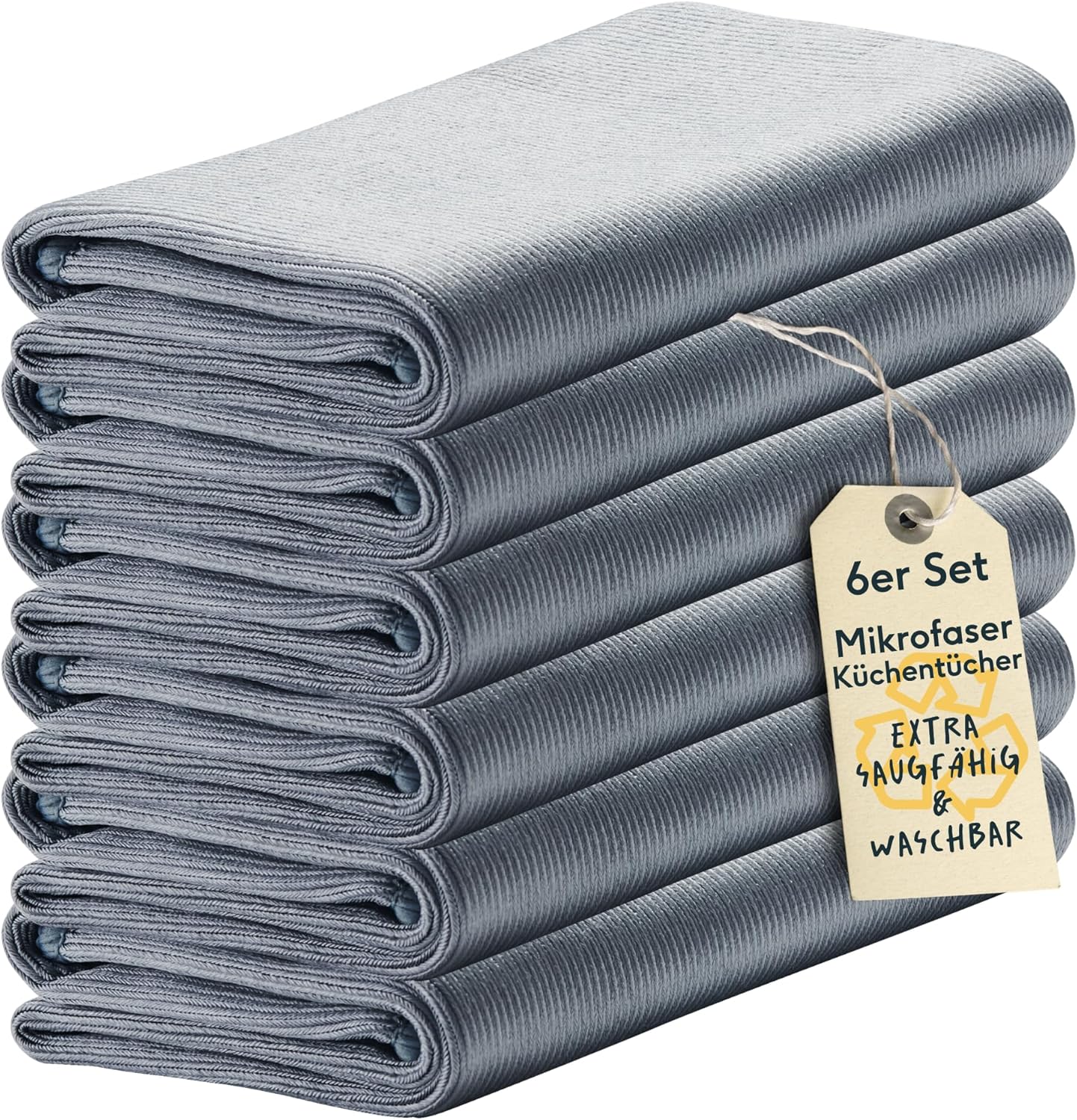 SILBERTHAL Geschirrhandtücher 6er Set Mikrofaser 40x60cm - Reinigungstuch für Edelstahl und Glas - Extra weich & Ultra saugstark - Silber | قیمت یورویی 18.95€