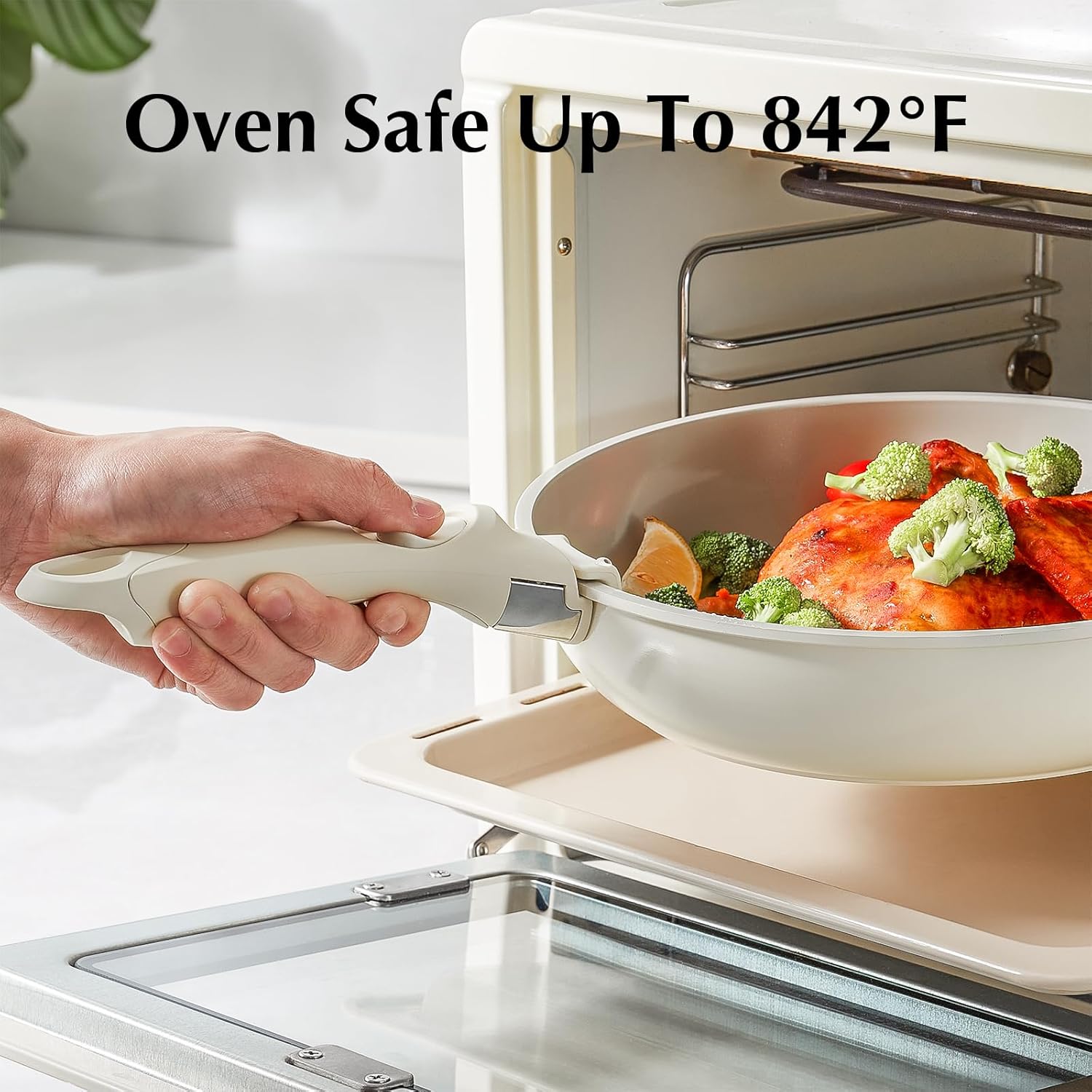 Ultimative Vielseitigkeit: Der abnehmbare Griff lässt Sie die ultimative Vielseitigkeit von Küchengeräten erleben. Es kann vom Herd in den Backofen, auf den Tisch und in den Kühlschrank gestellt werden Geeignet für alle Herdarten: Vergrößern Sie den hochmagnetischen, leitfähigen Boden, der sich schnell und gleichmäßig erwärmt und auf allen Herdarten, einschließlich Induktion, funktioniert Einzigartiger abnehmbarer Griff: Mit professionellem Sicherheitstest, hält er bis zu 10 kg aus. Nur ein einfacher Klick, und Ihre Küchenreise kann beginnen Optimale Stapellagerung: Optimale Lagerung und einfaches Stapeln bei abgenommenen Griffen spart bis zu 70 % mehr Platz Ersatz-Topfgriff : Der Topfgriff hat eine kompakte Größe, so dass Sie ihn in der Schublade des Küchenschranks aufbewahren können | قیمت یورویی : 19.99€