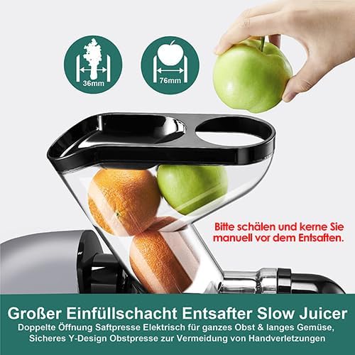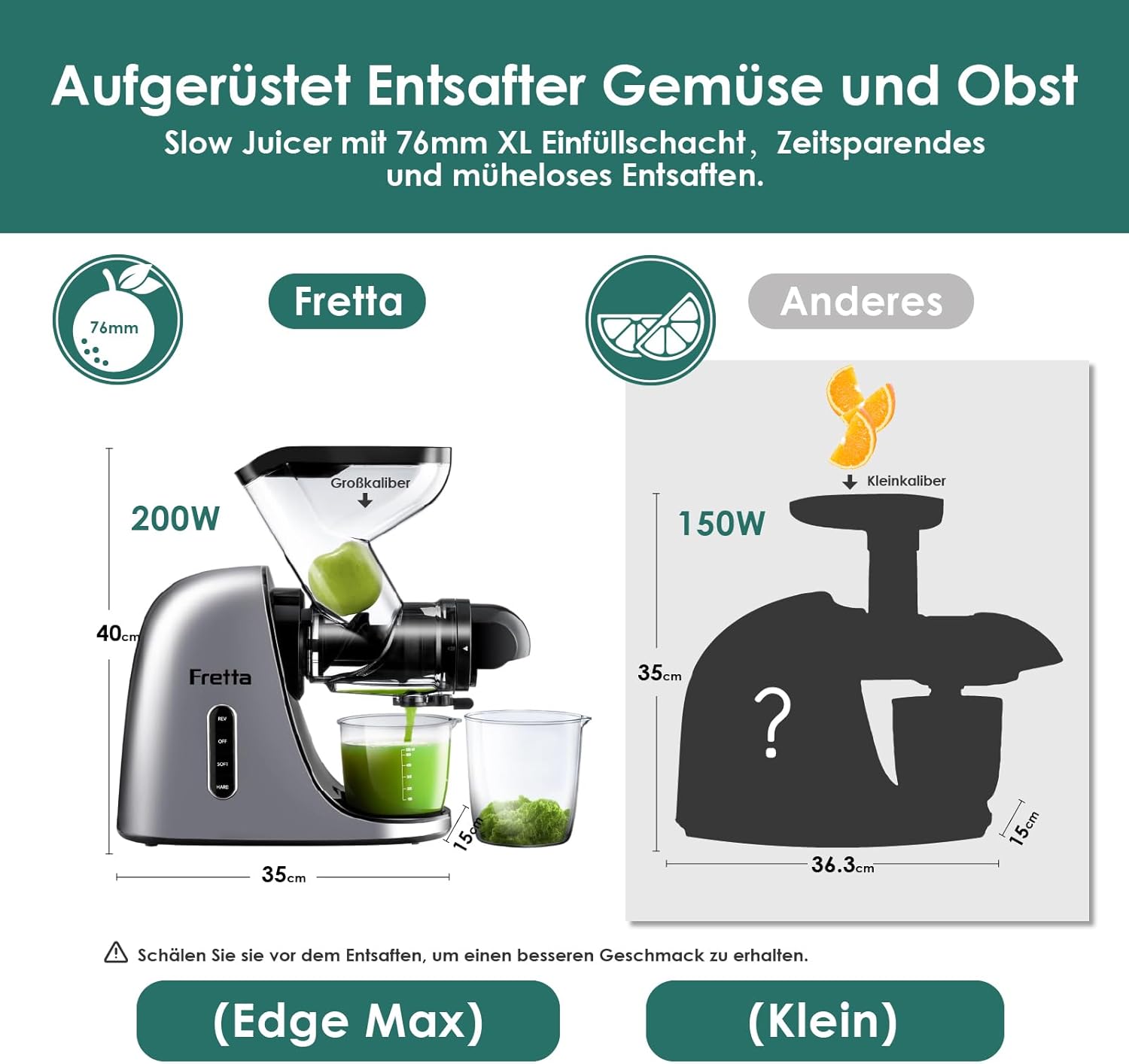 Fretta Juicer Machine Slow Juicer Entsafter Gemüse und Obst Saftmaschine, Obstpresse Elektrisch Saftpresse 76mm XL Öffnung Juice Maker Masticating Kaltentsafter BPA-Frei, Einfache Reinigung,Silber | قیمت یورویی 89.99€