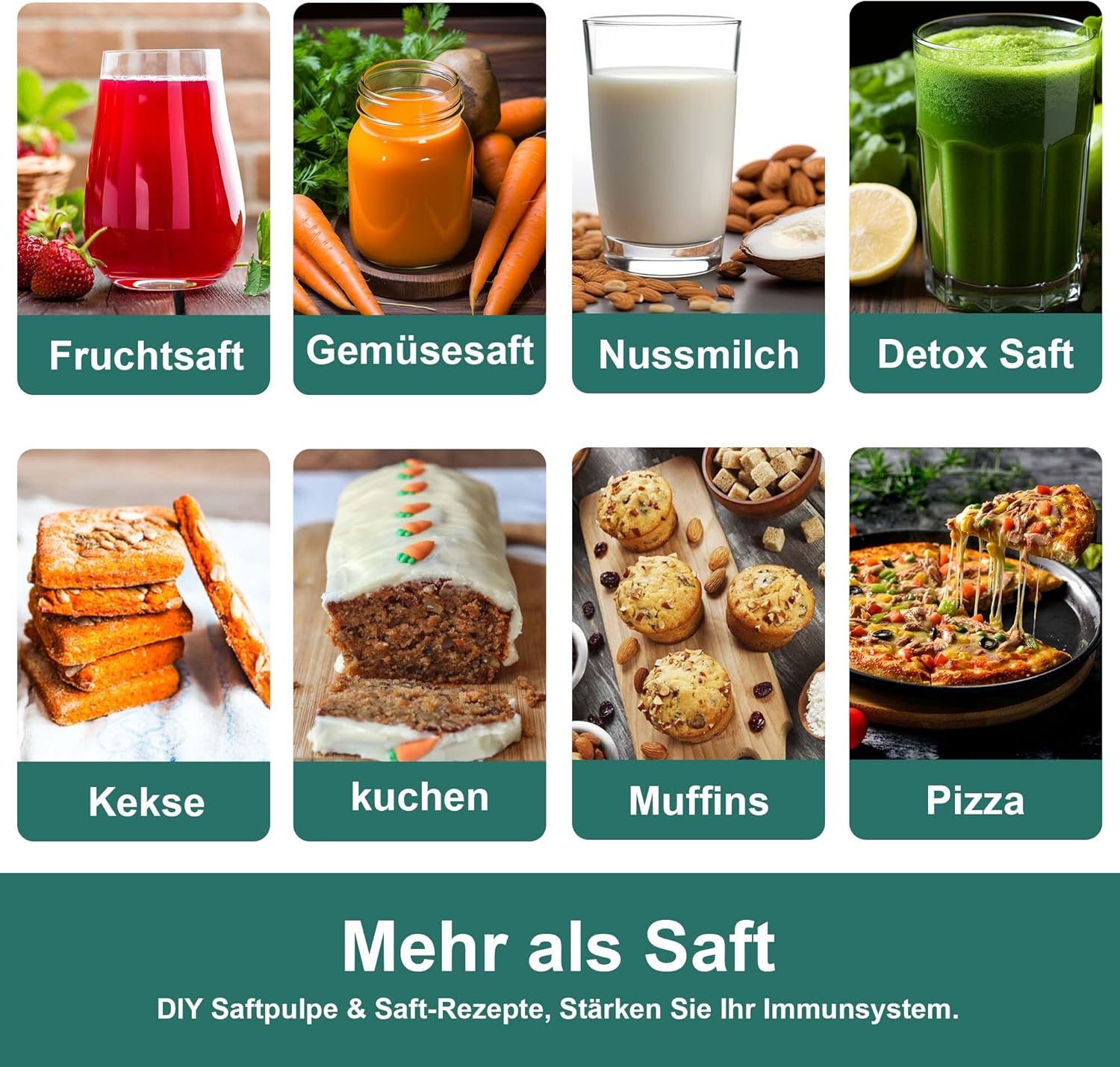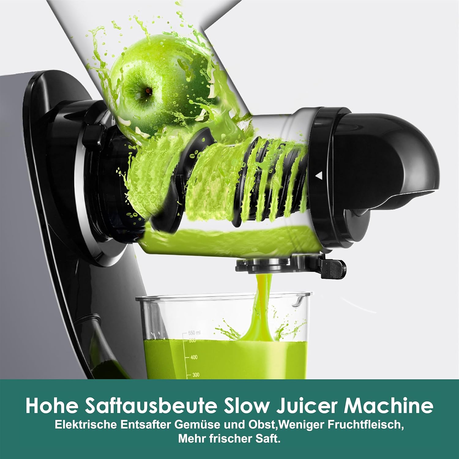 【Extrabreiter Einfüllschacht Saftmaschine】Fretta Horizontaler Slow Juicer Entsafter Gemüse und Obst Testsieger mit Bürste und 2 Tassen ist mit einem 76MM Großer Einfüllschacht ausgestattet, der es einfach macht, große Obst- und Gemüsestücke zu entsaften, ohne mühsames Schneiden und so sparen Sie Ihre Zeit. Tipps: Für einen besseren Geschmack ist es ratsam, die Schale vor dem Entsaften zu entfernen. 【BPA Freie für die Gesundhei der Familie】Wir bei Fretta legen großen Wert auf Ihr Wohlbefinden. Deshalb sind unsere Gemüse Entsafter Schnecke aus Tritan und dauerhaft 304 Edelstahl Material hergestellt, das eine BPA-freie Entsafterfahrung garantiert, die sicher ist und schützen Sie und Ihre Familie vor den möglichen Gefahren minderwertiger Materialien. So Horizontale Slowjuicer Entsafter Fruchtpresse Elektrische Saftpresse Testsieger ist ideal für Allergiker. 【Ultrahohe Saftausbeute & reduzierter Abfall】Fortschrittliche Low-Speed-Kaltpressen-Technologie ermöglicht es den Juicer Machine, die maximale Menge an Saft aus Obst und Gemüse zu extrahieren. Bei einer sanften Drehzahl von 80 U/min wird das Obst und Gemüse effizient ausgepresst, wodurch die Schaumbildung minimiert und Verstopfungen verhindert werden, was letztendlich die Saftausbeute maximiert. Verabschieden Sie sich von der Verschwendung und holen Sie das Beste aus Ihren Zutaten heraus! 【Erhöhter Nährwert & köstlicher Geschmack】Kaltpresse Entsafter nutzt die Kaltpress-Technologie mit niedriger Geschwindigkeit, um den Saft schonend zu extrahieren und gleichzeitig wichtige Nährstoffe zu erhalten. Im Gegensatz zu Hochgeschwindigkeits-Zerkleinerungs- und Schleudertechniken minimiert dieser Prozess die Oxidation und verlängert die Frische Ihres Saftes. Genießen Sie jeden einzelnen Schluck, den verbesserten Nährwert und den exquisiten Geschmack Ihres frisch gepressten Saftes! 【Leistungsstarker aber leiser Motor】Fretta Profi Slow Juicer Testsieger Karotten Sellerie Juice Maker Maschine werden von einem robusten 200 W Gleichstrommotor angetrieben. Das Design mit hohem Drehmoment und niedriger Drehzahl arbeitet leise und extrahiert die Nährstoffe aus Ihren Lieblingsfrüchten und -gemüsen. Diese Obstpresse Elektrisch Orangenpresse läuft unter 70DB, so dass er Ihre Nachbarn und Familie nicht stört. 【Sicheres Y-förmiges Design】Der Einfüllschacht der Gute Qualität Selleriesaft Entsafter Obst und Gemüse Saft Maschine verfügt über ein sicheres Y-förmiges Design, das speziell entwickelt wurde, um ein versehentliches Einführen mit der Hand zu verhindern und das Risiko von möglichen Handverletzungen zu minimieren. Fretta Juicer Entsafter Elektrisch als Fruchtsaftpresse, Gemüsesaftpresse und Nussmilch Maschine. 【Doppelte Zuführungsrutsche für mehr Effizienz】Fretta Ingwer Saftpresse Elektrisch Zitruspresse Apfelpresse ist mit einem praktischen doppelten Einfüllschacht ausgestattet. So können Sie mehrere Zutaten gleichzeitig einfüllen, was Ihnen Zeit und Mühe beim Entsaften spart. Darüber hinaus ist der Schieber so konzipiert, dass er eine kontinuierliche Zufuhr ermöglicht, ohne dass er entfernt werden muss, was den Entsaftungsprozess weiter vereinfacht. 【Einfache Montage & Reinigung】Schwarz Presse Obstpresse Elektrische Apfelsaftpresse Fruchtentsafter ist für eine mühelose Verwendung konzipiert. Mit nur einem einzigen Knopfdruck lässt sich der Entsafterkörper leicht abnehmen und unter fließendem Wasser reinigen. Zu Ihrer Bequemlichkeit haben wir auch eine spezielle Bürste beigefügt, mit der Sie mühelos alle kleinen Trester aus dem Entsaftersieb entfernen können. 【2 Modi & Rückwärtsfunktion】Cold Press Juicer Extractor Squeezer bietet 2 Geschwindigkeits Modi und eine praktische Rücklauffunktion. "Soft-Modus" (85-100 U/min) zum Entsaften von Orangen, Wassermelonen, Trauben, Beeren und weichen Früchten."Hard-Modus" (95-110 U/min) für Äpfel, Birnen, Karotten, Rüben, Sellerie, Ingwer, Grünkohl und härtere Zutaten. Die umkehrfunktion verhindert effektiv Verstopfungen während des Entsaftungsvorgangs und sicher kontinuierliches und ununterbrochenes Entsaften. 【Nährstoffhaltiger Säfte & Mehr Kulinarik】Grünes Presse Entsafter Elektrisch für Gemüse und Obst ist mit einem Edelstahlfilter mit einem feinen und dichten Netz ausgestattet, das den Saft angemessen vom Trester trennt und reine Farbe, natürlichen Geschmack, Nährstoffe & Vitamine behält. Jeder Schluck, den Sie nehmen, ist ein reiner, köstlicher Saft. Mehr als Saft, die Verschwendung von Gemüse und Obst vermeiden, können Sie Viele Leckereien wie z.B. kuchen, Kekse, Muffins, Pizza, Suppe. | قیمت یورویی : 89.99€