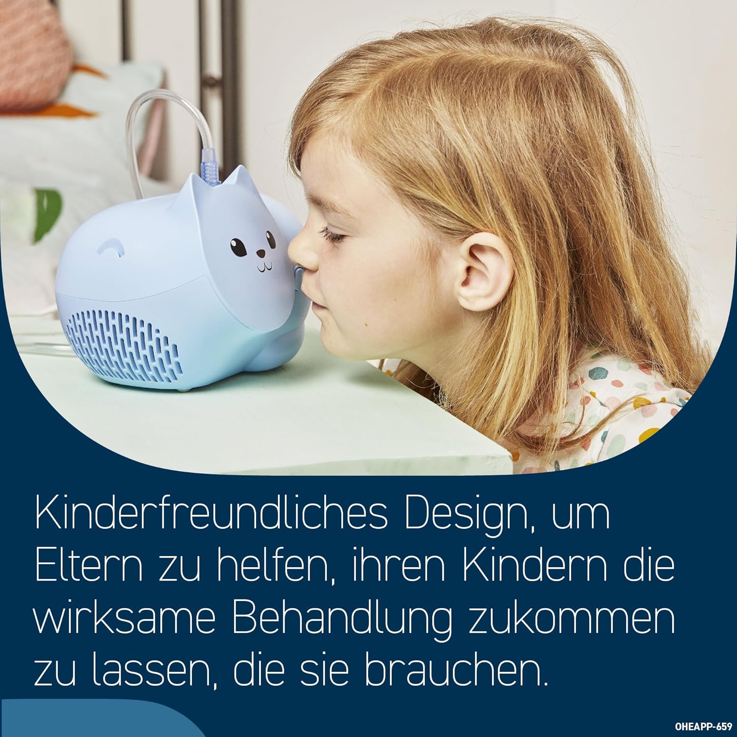 OMRON Nami Cat kinderfreundliches Inhalationsgerät für Kinder; effizienter Inhalator zur Behandlung von Husten & Schnupfen, Bronchitis, Asthma und Erkältungen; Inhaliergerät mit hochwertigem Zubehör | قیمت یورویی 43.5€